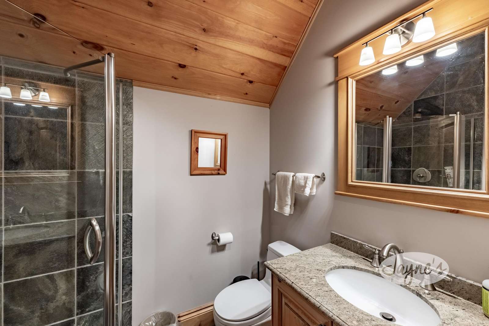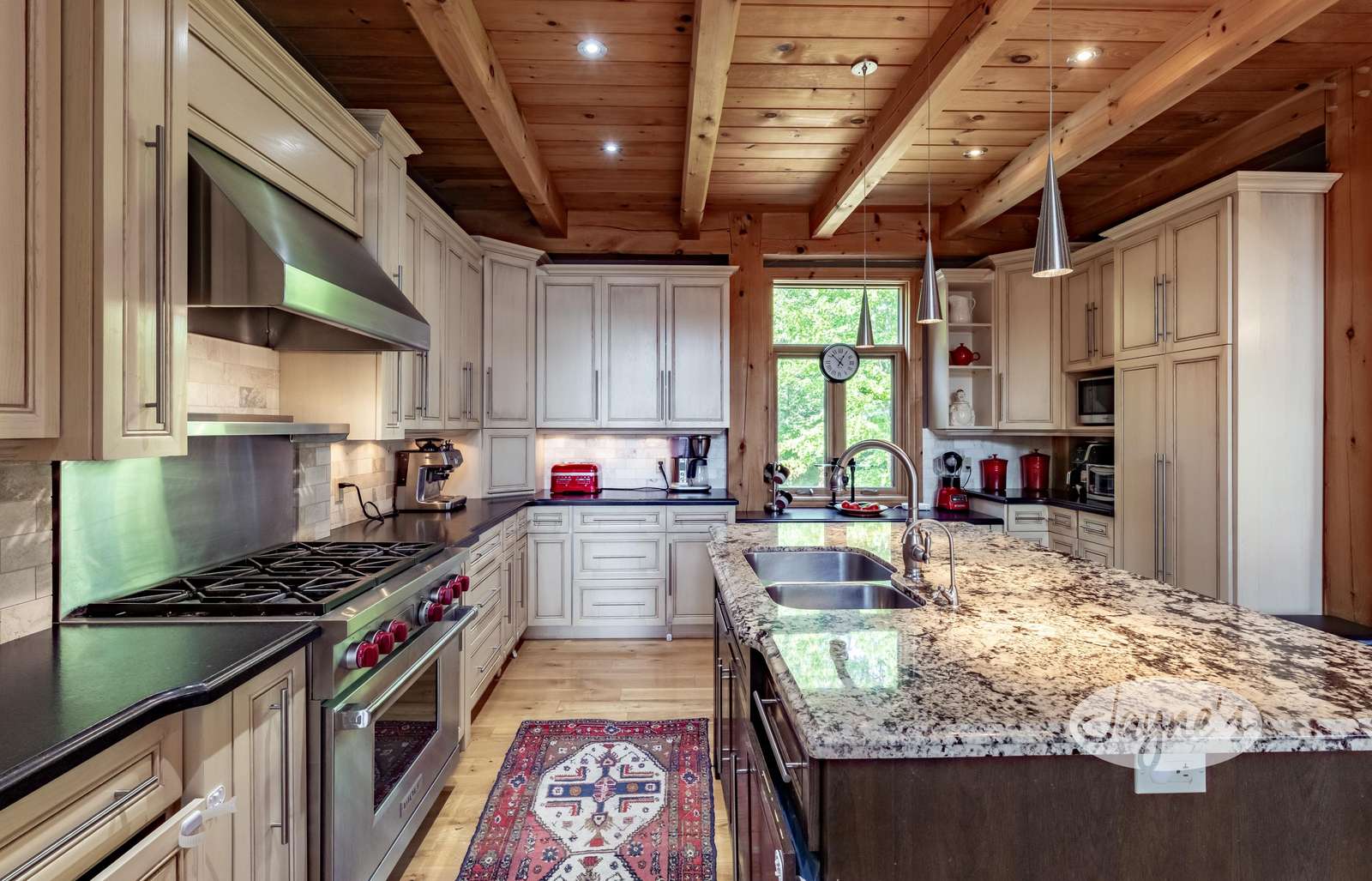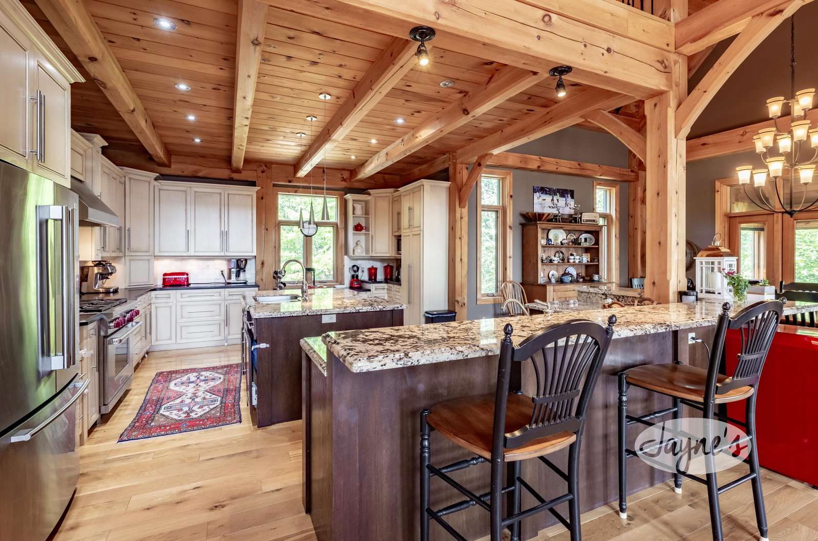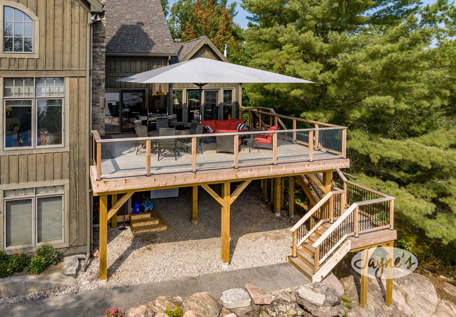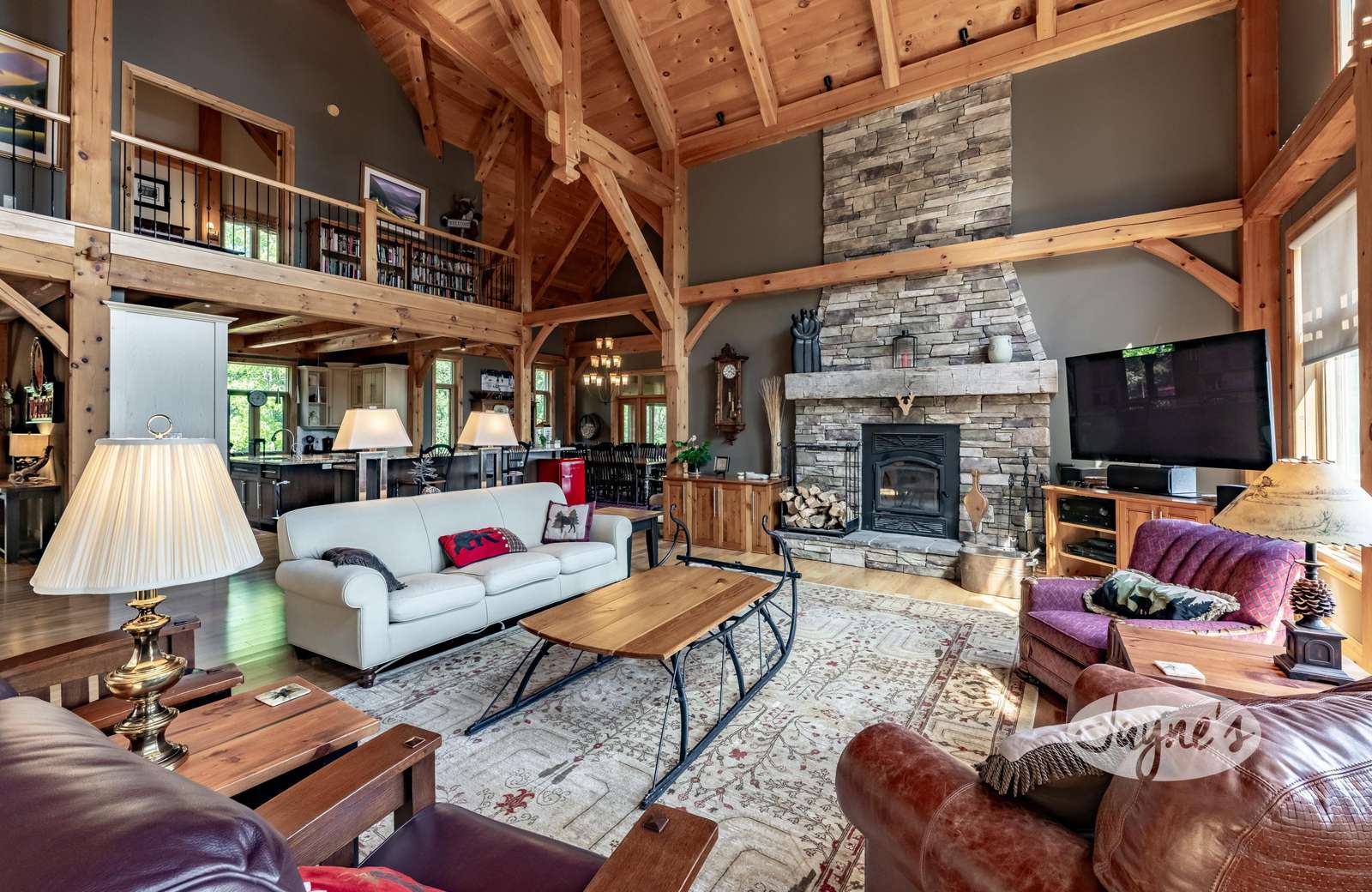 Elegant but cozy, all the rooms are filled with thoughtfully-selected comfortable furnishings. With 6 bedrooms, 7 bathrooms, gourmet kitchen, various indoor and outdoor seating areas, there is enough room for everyone to enjoy together and alone time. The Great Room takes advantage of the wonderful views with a cathedral ceiling that adds elegance to this room, and the large windows take advantage of all the natural light. Here you will find your kitchen, living area, plus a floor-to-ceiling Muskoka stone wood-burning fireplace that adds the ambiance of the true Canadian north. In addition, you have a breakfast bar and dining room with entry to another deck - this room is truly the heart of the home. The deck off the dining room has an Weber BBQ with rotisserie, outdoor dining for 6 and seating area that can sit 5 with a coffee table plus expansive views. This is an entertainer's paradise. There is a 4 season Muskoka room off the dining area to increase your seating or allow a separate conversation area. The gourmet kitchen is a chef's dream, well-lit with natural light and is complete with granite countertops, decorator finishes and upscale appliances. Off of the Great Room sits the main floor master bedroom. With its 5-piece ensuite and private deck, it's a true retreat. The lower level games rooms, has another stone wood-burning fireplace, television, pool table that can be converted to a ping pong table and walkout.