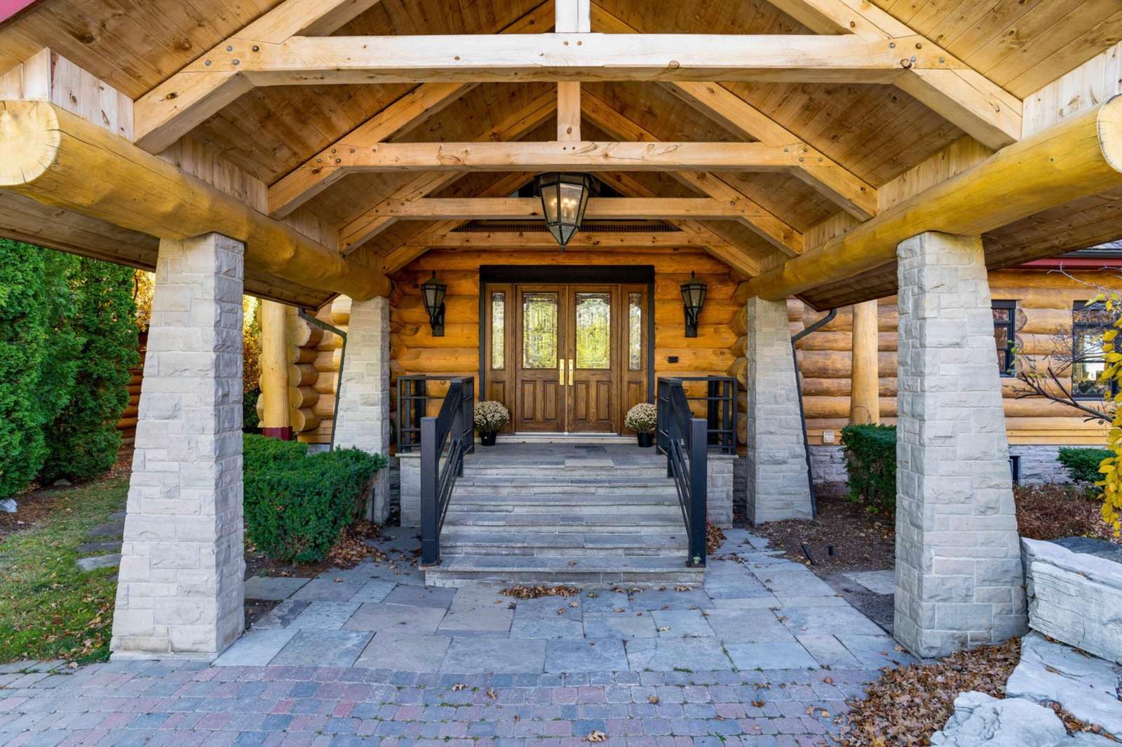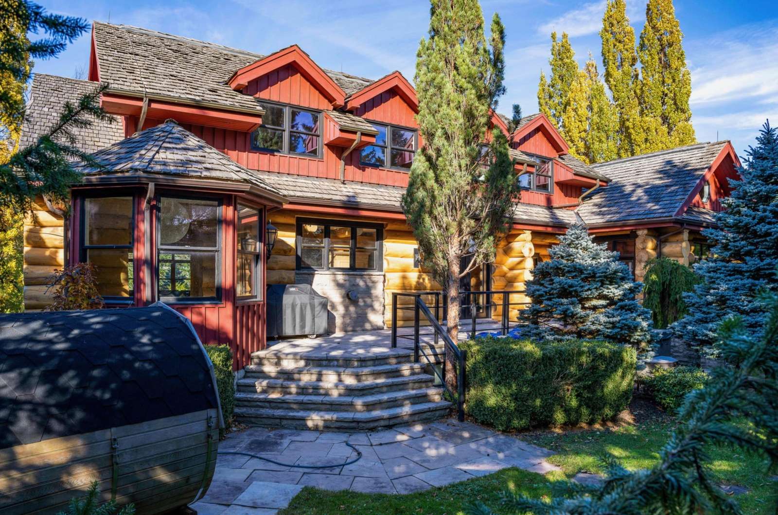 Driving up to this stunning log home you will be greeted by an interlock driveway which steps up to a beautiful double door entry. Around the back of the property is a 41 X 10 foot slate terrace which is off of the Great Room and offers additional entertaining space. Newer Weber gas bbq ensures efficient outdoor grilling. Immerse yourself in tranquility in the 8 person hot tub or enjoy the barrel sauna. This is an ideal location at the base of the ski hills.
