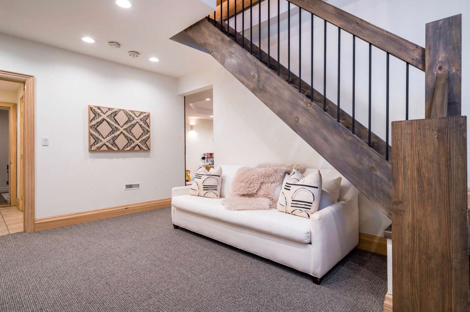 This upper level loft area overlooks the great room and hosts more bedrooms, a full bath and laundry room.