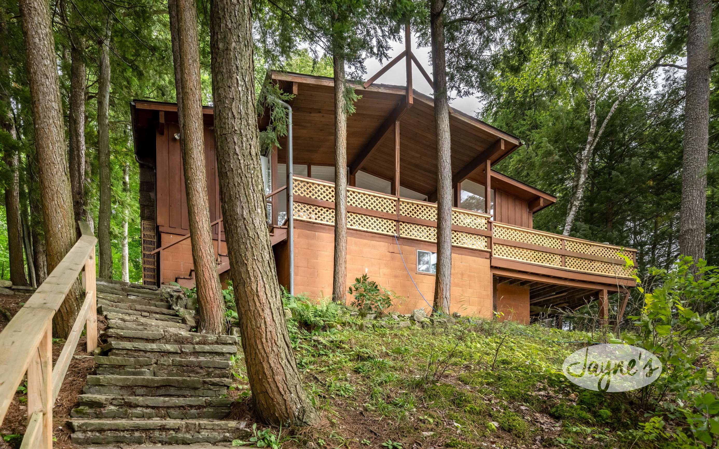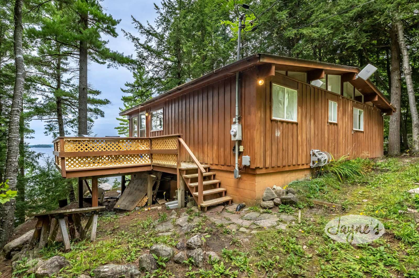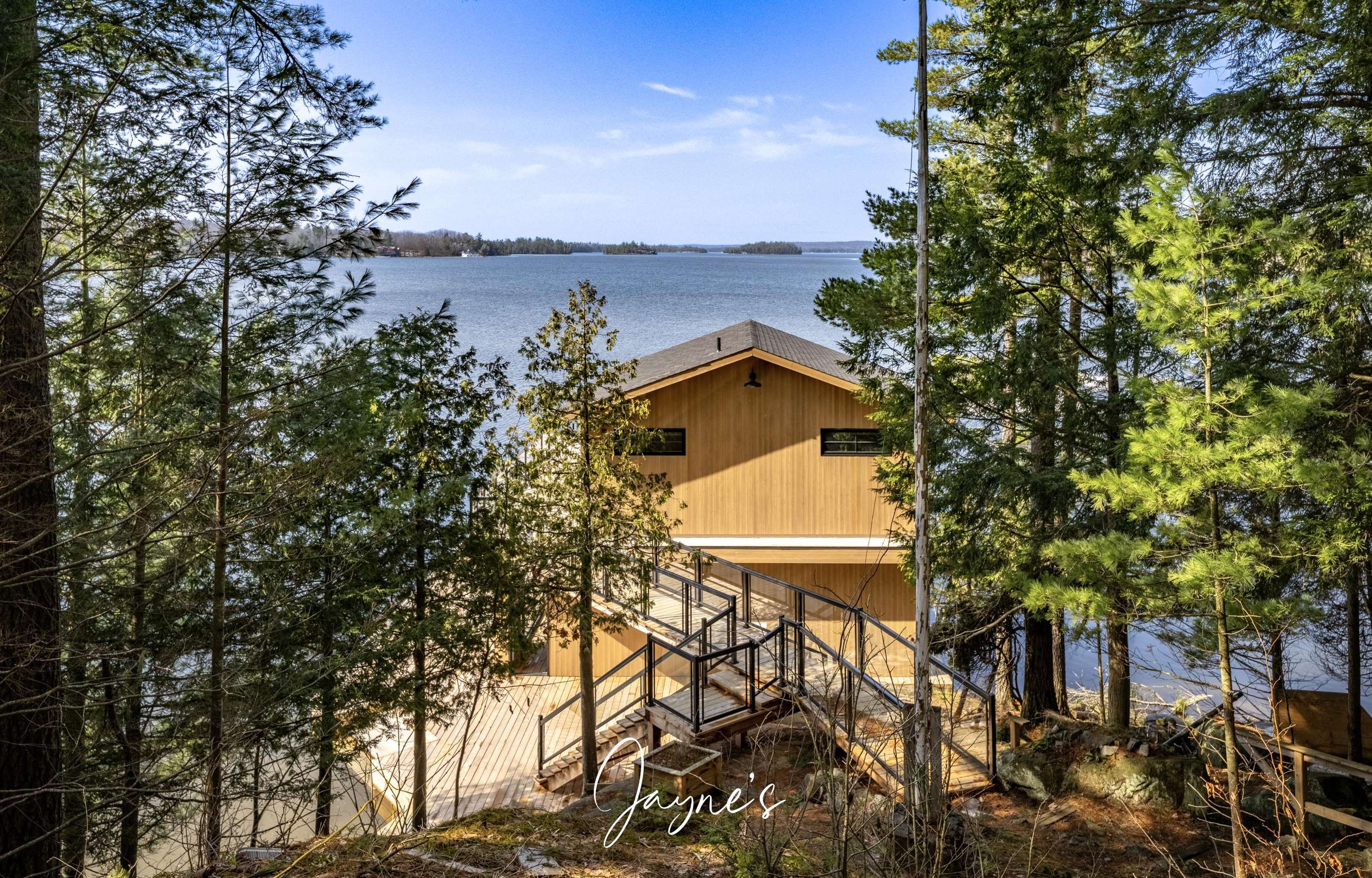 THE CHASE is perched atop a slope among the trees on a classic Muskoka property. The cottage offers a very peaceful and serene atmosphere. With southwest exposure and rocky landscape surroundings, this cozy cottage will provide its guests with a unique Muskoka experience. A naturally designed stone staircase leads you down towards the rocky shoreline, where the newly built boathouse and dock await. The boathouse offers an interior boat slip and upper level living accommodations and large deck.