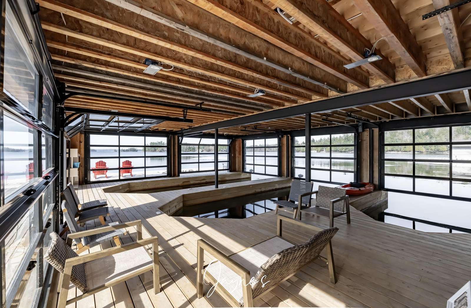 Newly built boathouse with interior slip.
