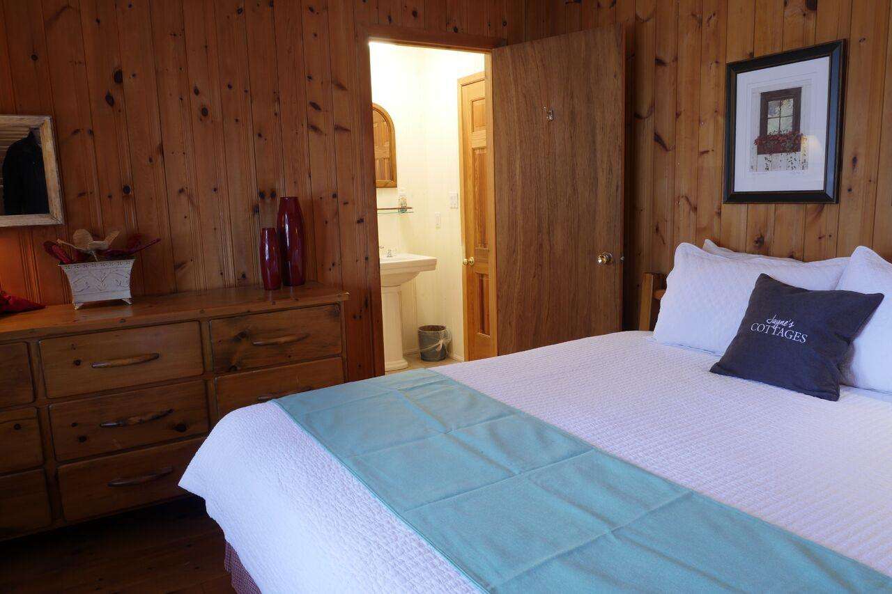 Just off the front foyer, guests will find two of the cottage's seven bedroom.The larger of these two bedrooms is also one of the cottage's two master bedrooms.