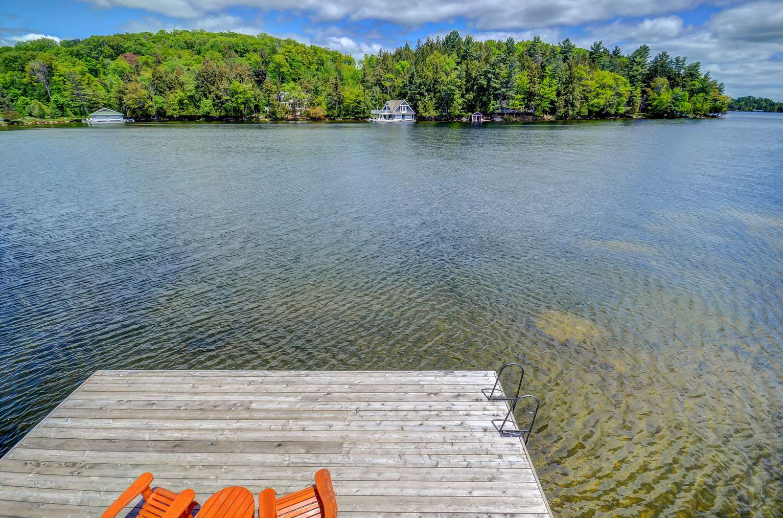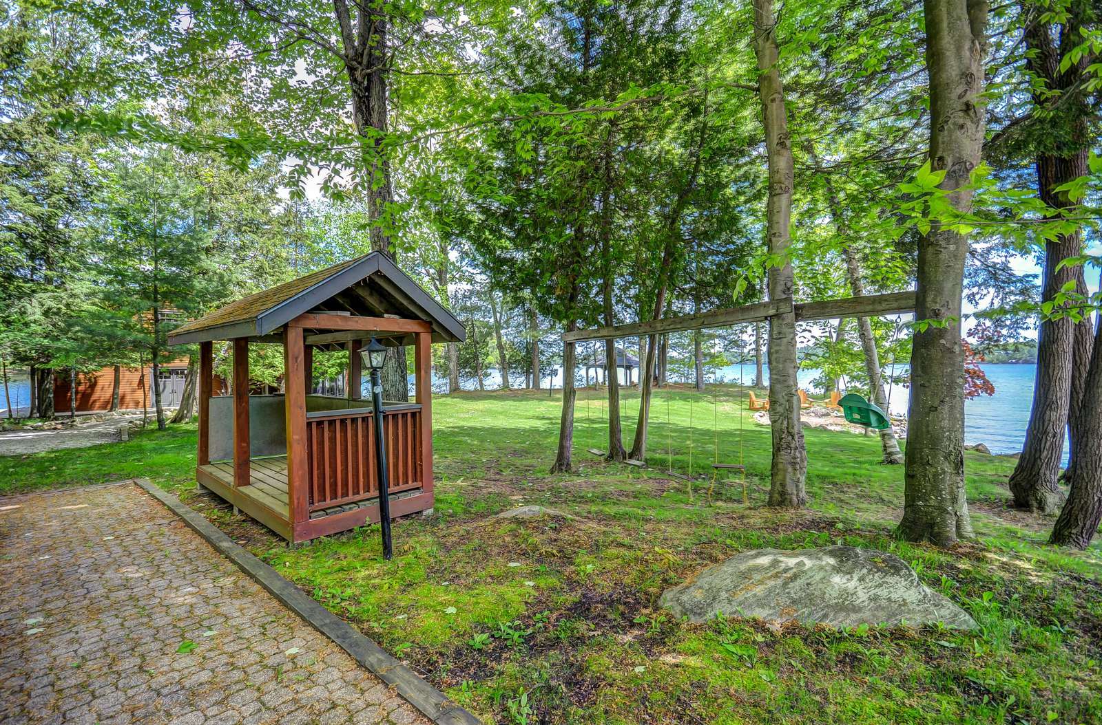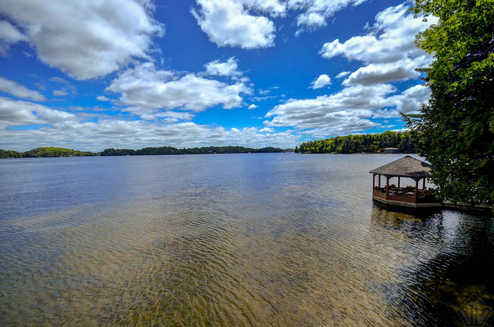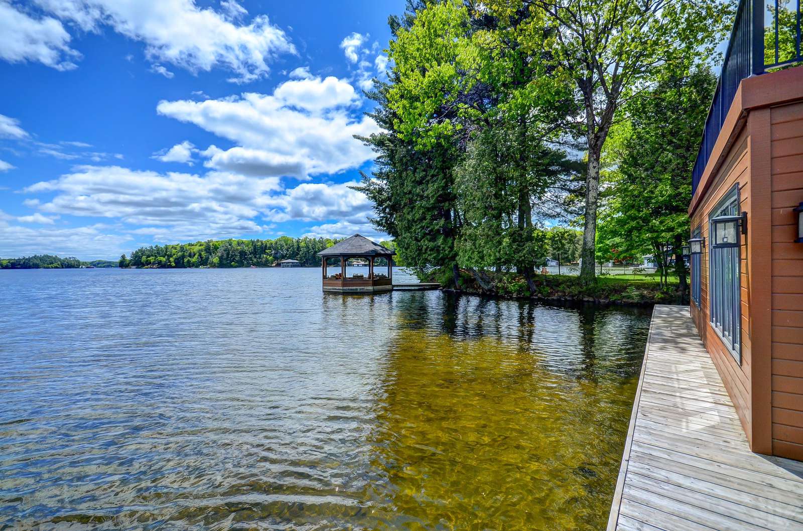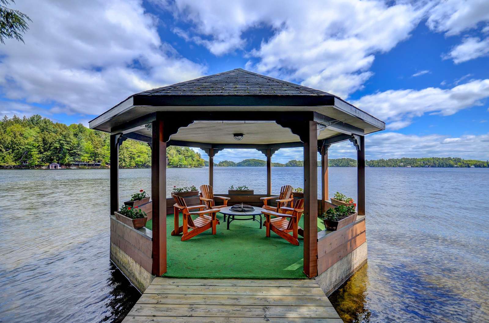 The stillness and tranquility of Muskoka living is easy to enjoy from the gazebo right on the water, also a great shaded area for watching the children during the day.