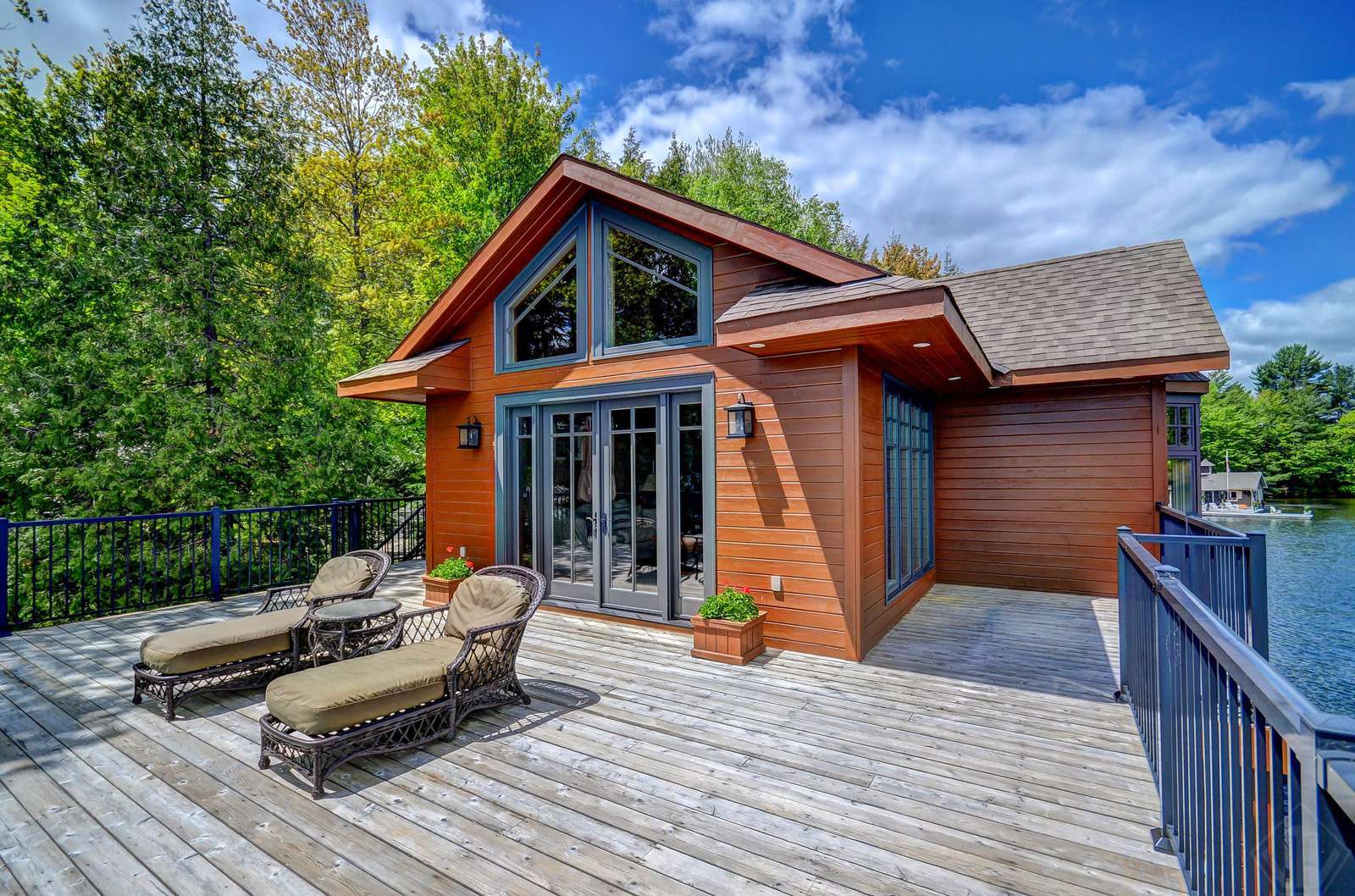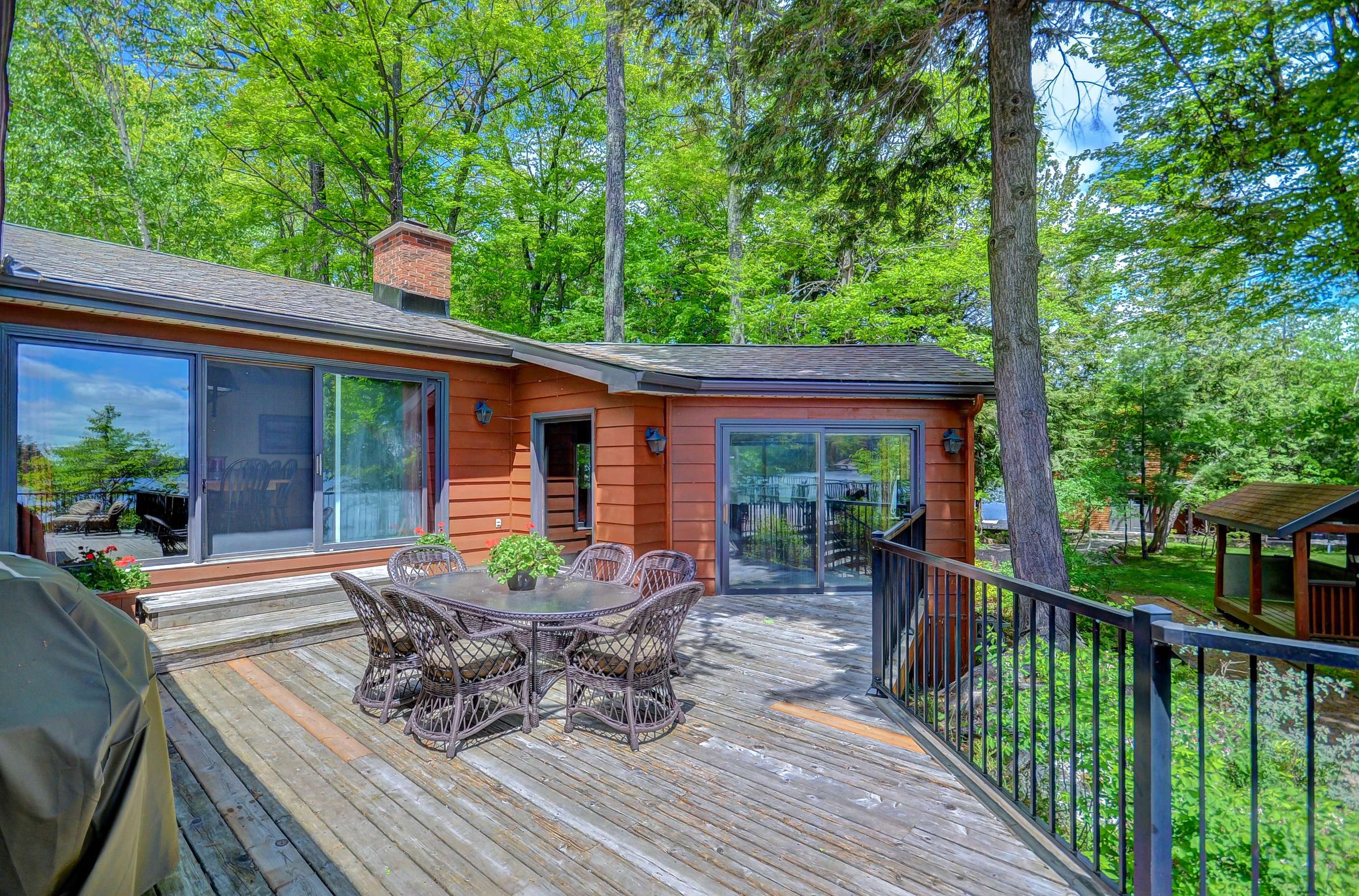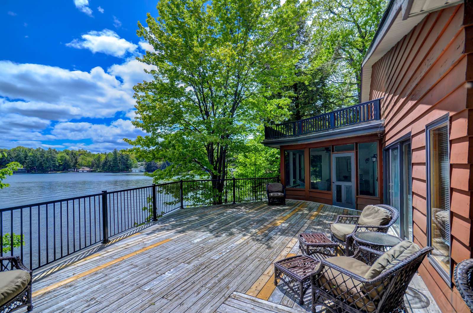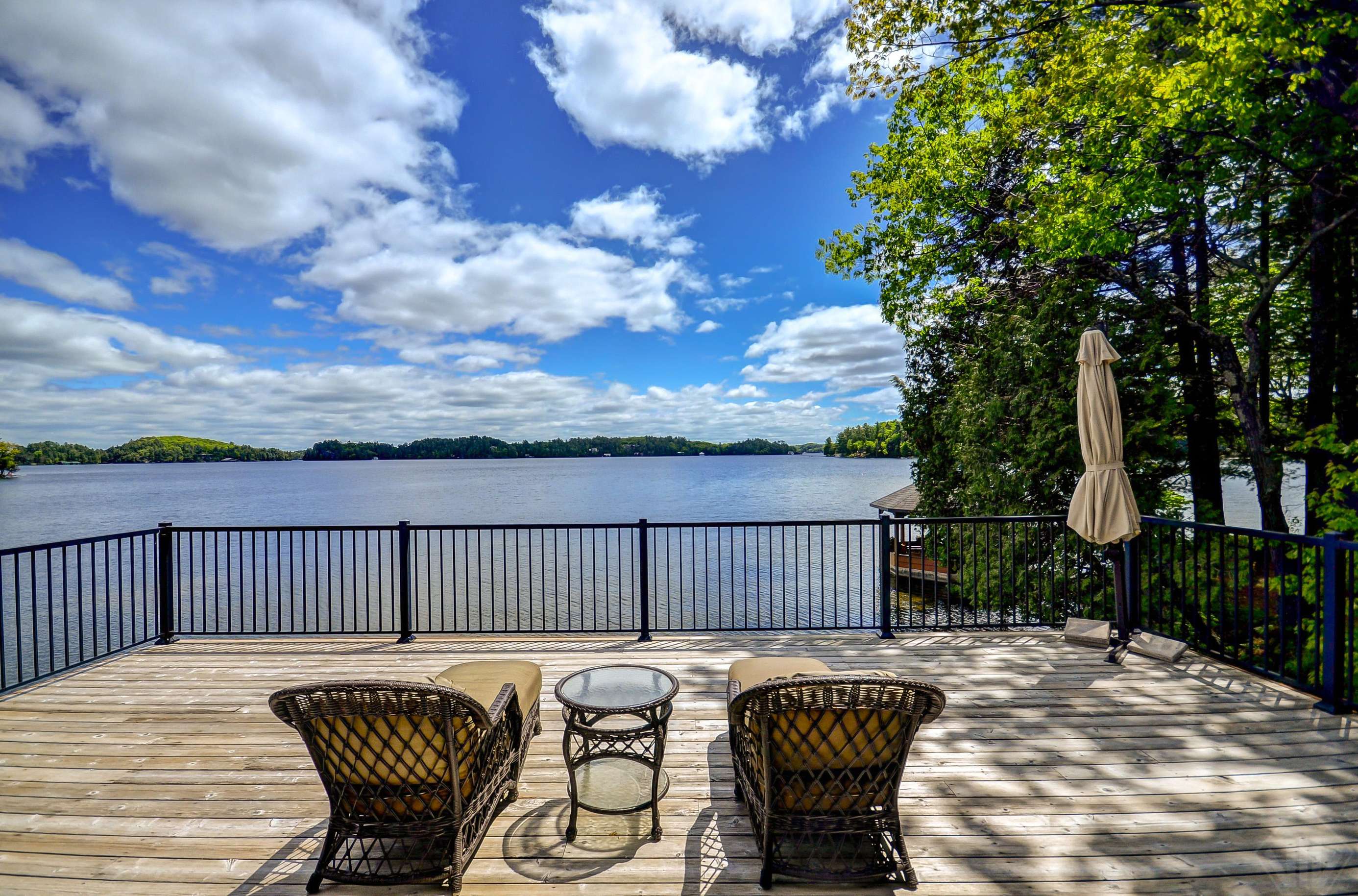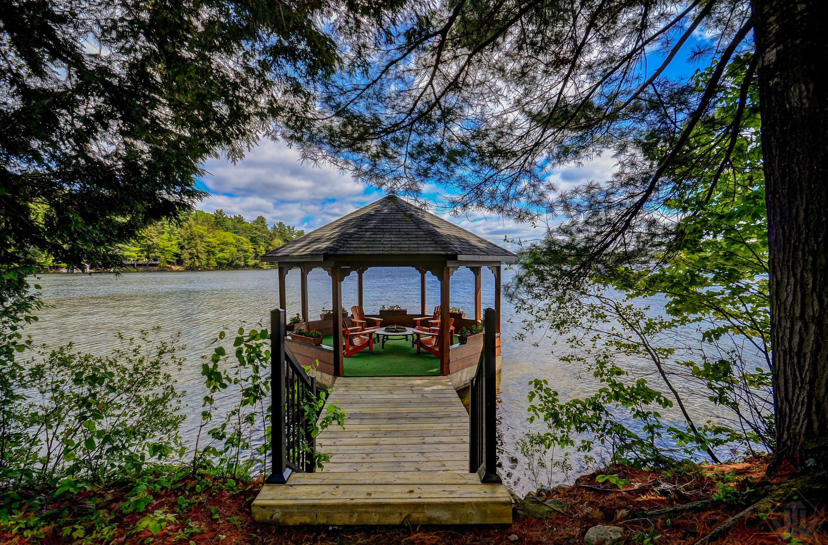 The stillness and tranquility of Muskoka living is easy to enjoy from the gazebo right on the water, also a great shaded area for watching the children during the day.