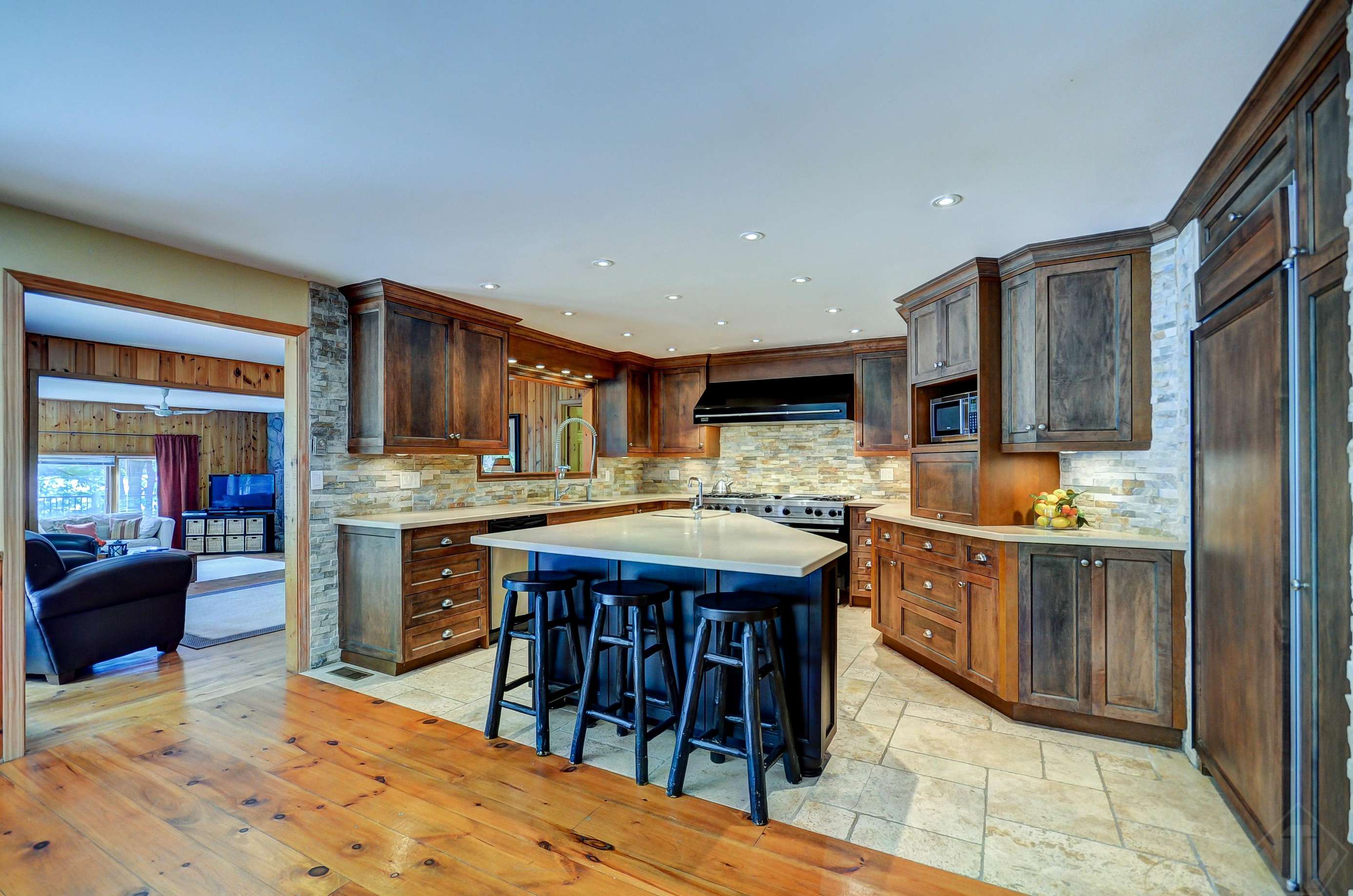 Cottage boasts a total of 9bdrms & 5bath, a boathouse, a gourmet kitchen, 2 fireplaces and a traditional Muskoka Room. Steps away from cottage is a sandy beach with shallow water and a lakeside Gazebo- large lot & level land perfect for families!