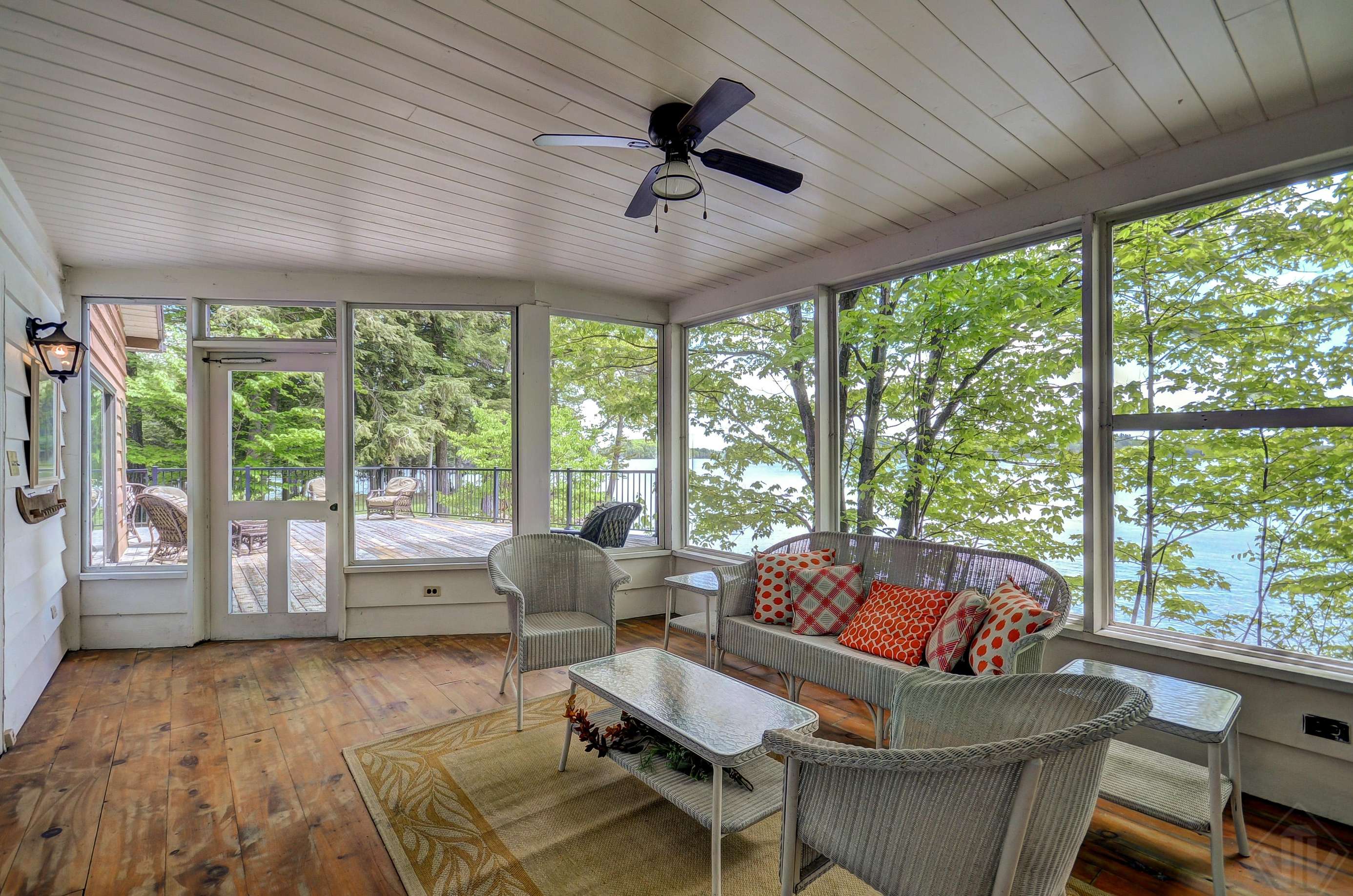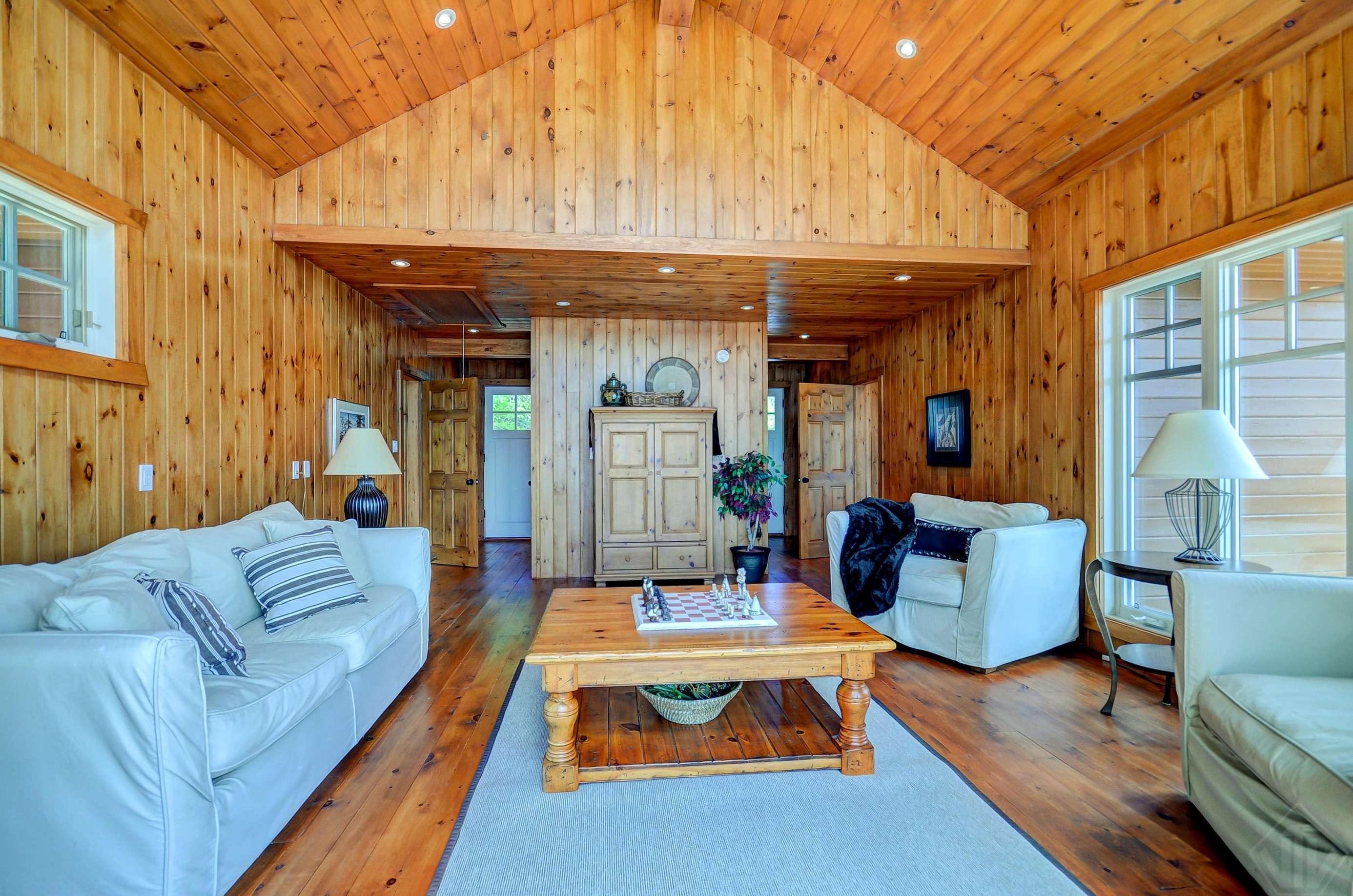 On the north side of the property, guests will find a spacious boathouse with living quarters, an entertainment area (with Ping Pong table), two indoor boat slips, and an upper and lower deck, each equipped with outdoor lounge furniture. There are two double beds as well as a two-piece bathroom located in the upper boathouse living quarters