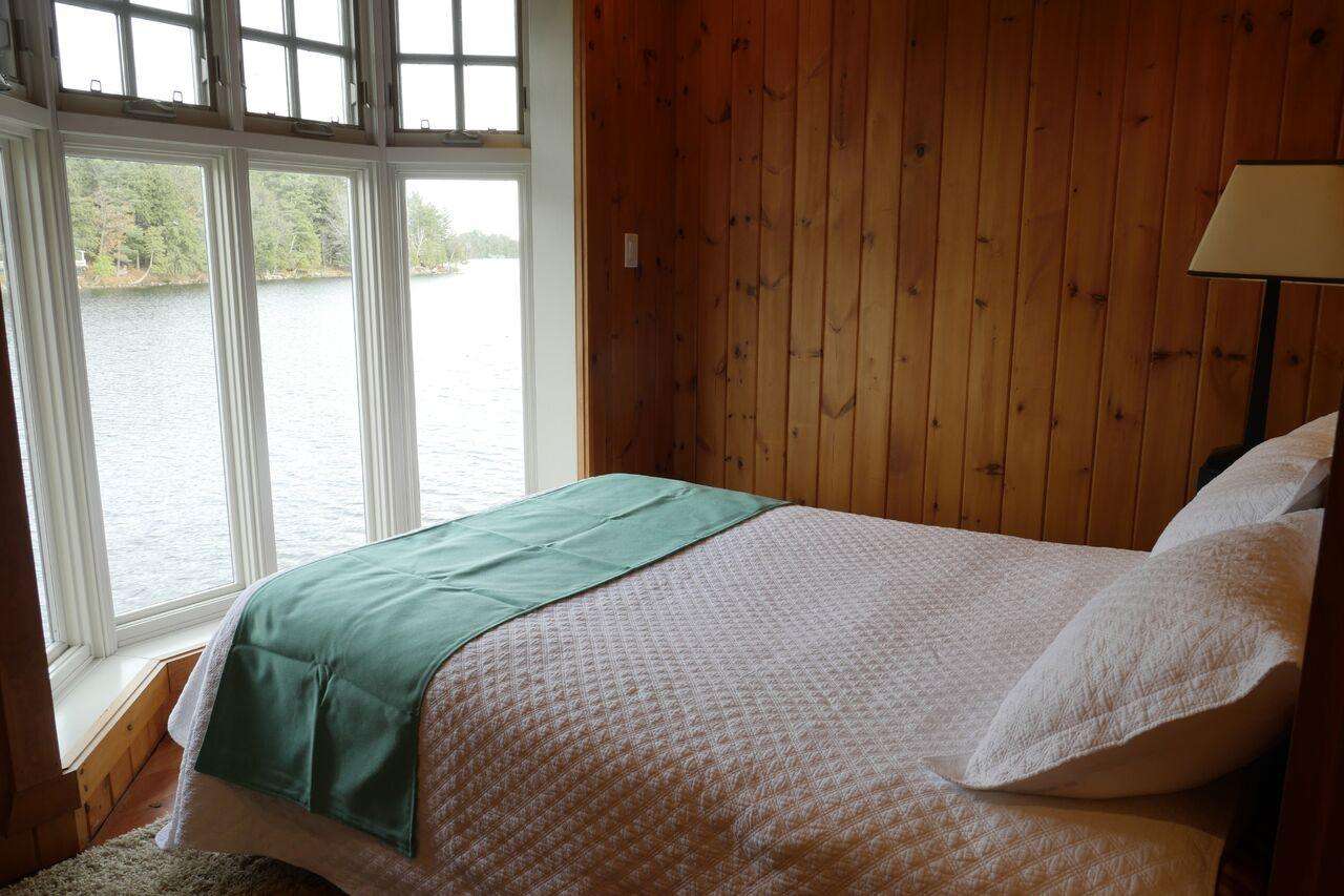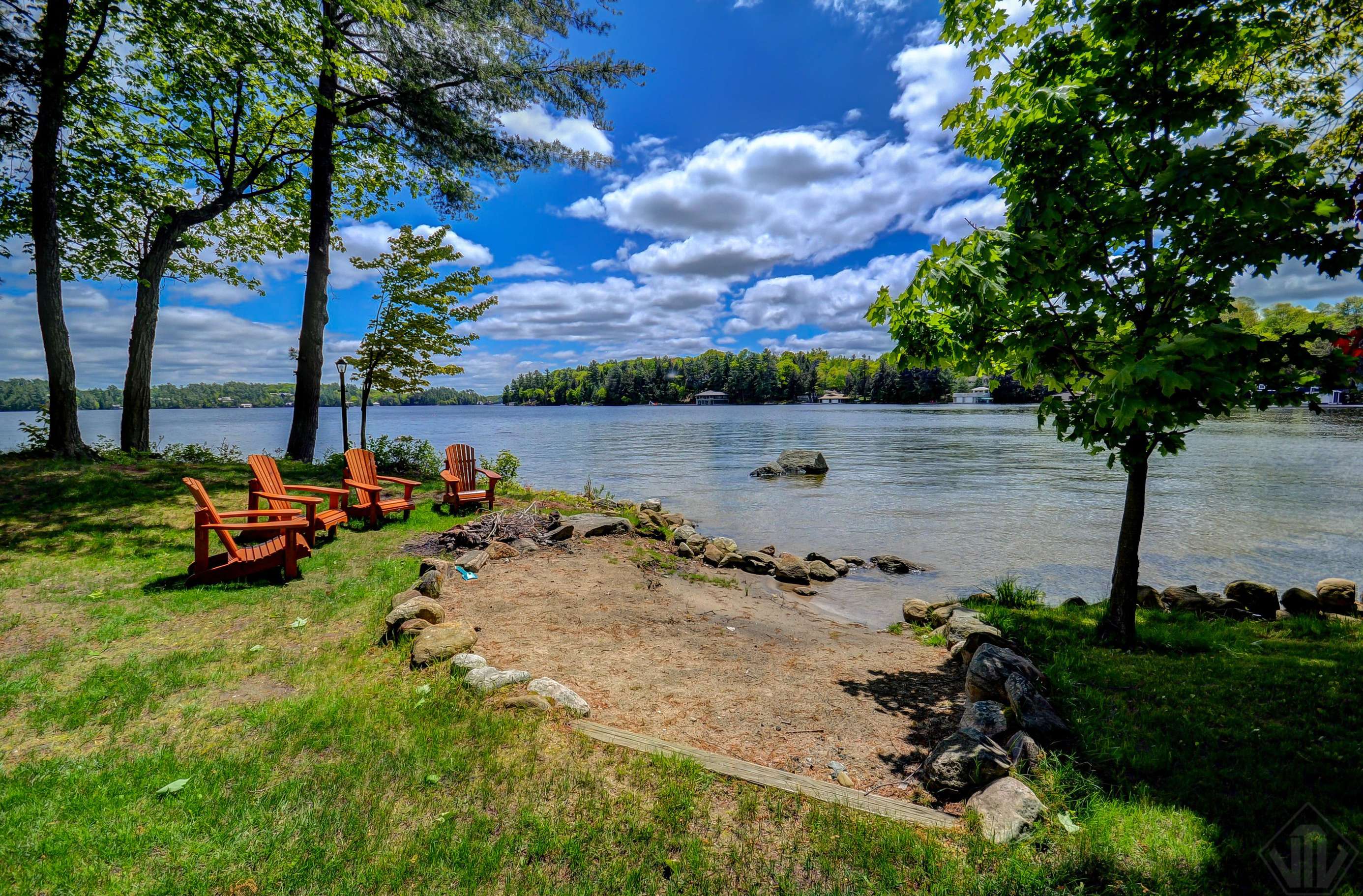 Located on a very quiet bay, children can play on the rustic swing set, or splash around the shallow sandy beach area. A fire pit awaits marshmallow roasts, or set up a badminton game or practice your putting on the large grassy area. Golfing enthusiasts will delight in the many golf courses in the area, such as Rocky Crest Golf Resort, Windermere Golf and Country Club, and Lake Joseph Golf Club.