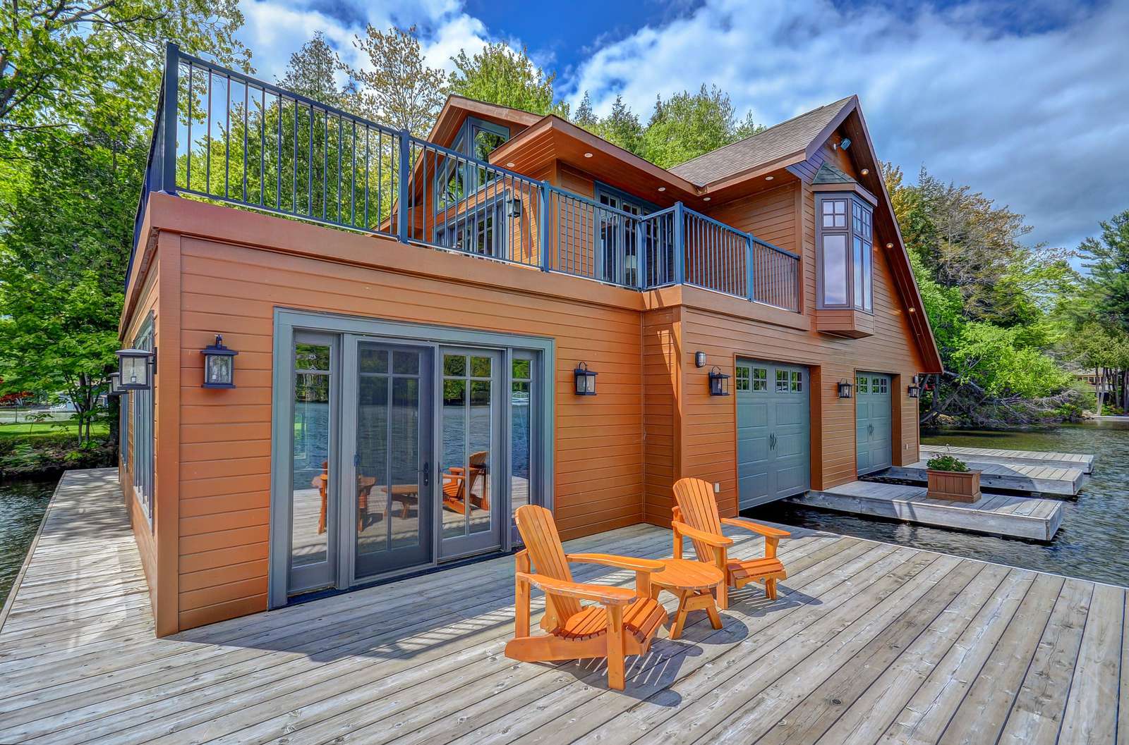 Surrounded by the natural beauty and splendour of the Muskoka landscape, The Drake is a gorgeous cottage located on the southern end of Lake Rosseau, just minutes from Port Carling. Only two and a quarter hours north of Toronto, this spacious, winterized, ranch-style residence offers luxurious living areas for family gatherings, entertainment, dining, and relaxation. Hardwood floors and a traditional Muskoka knotty-pine interior enhances the natural charm and comfort of the cottage.
