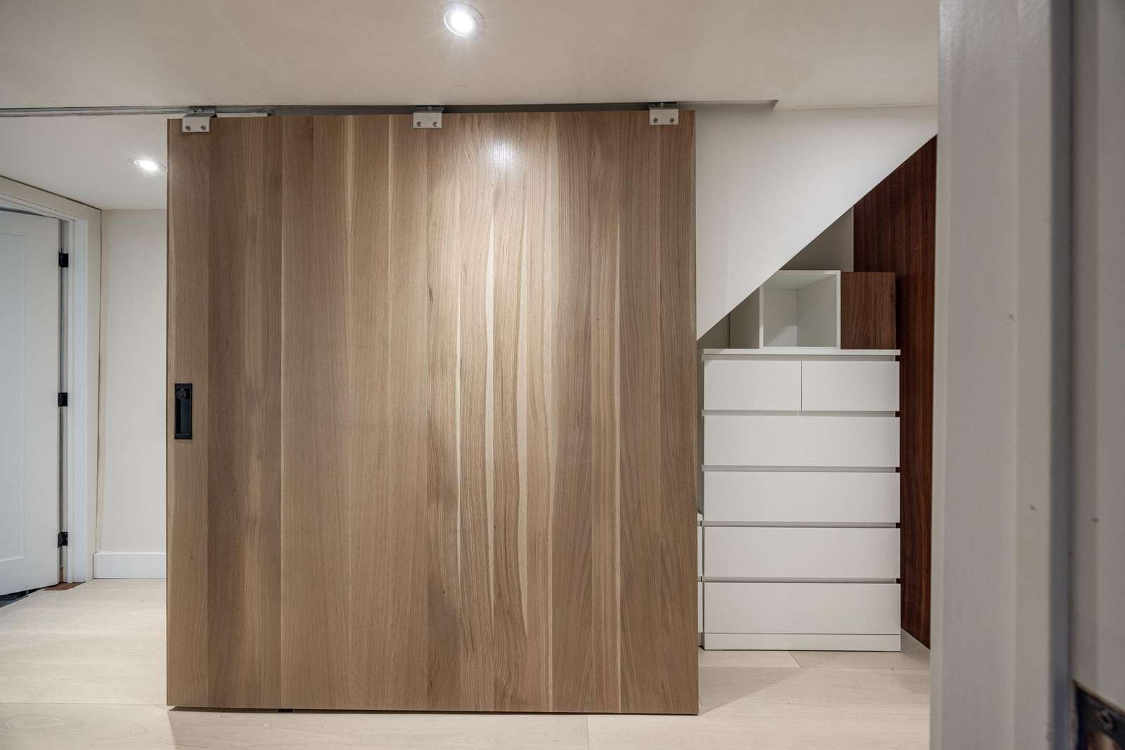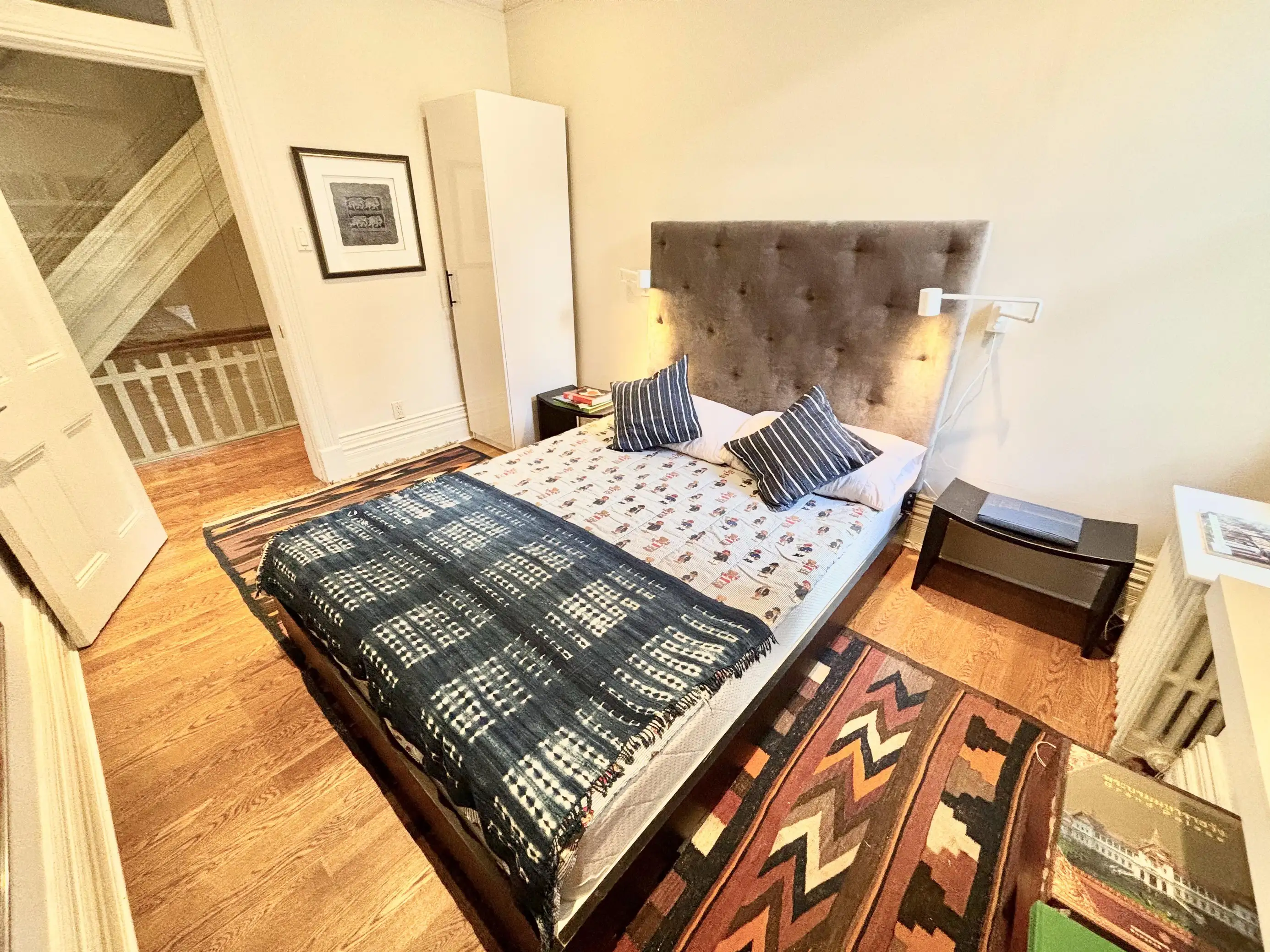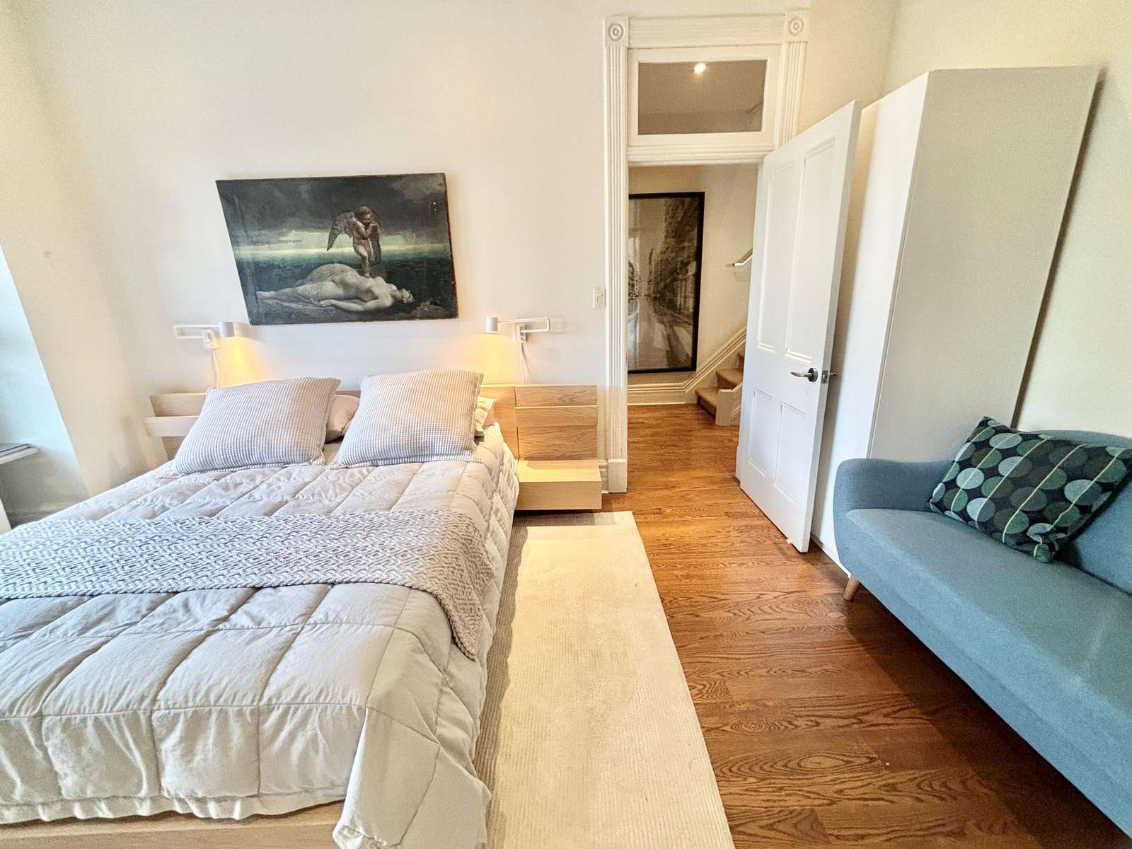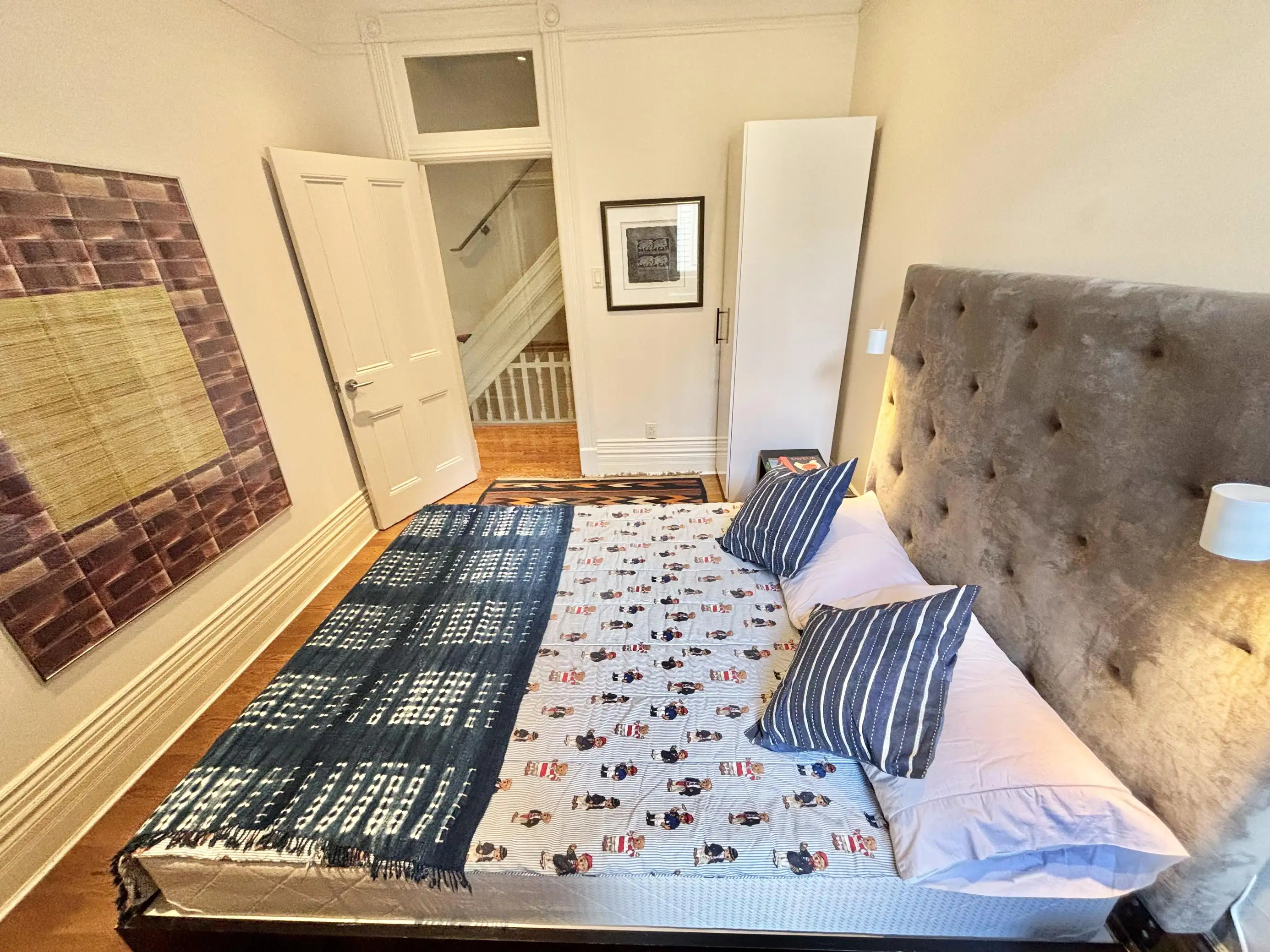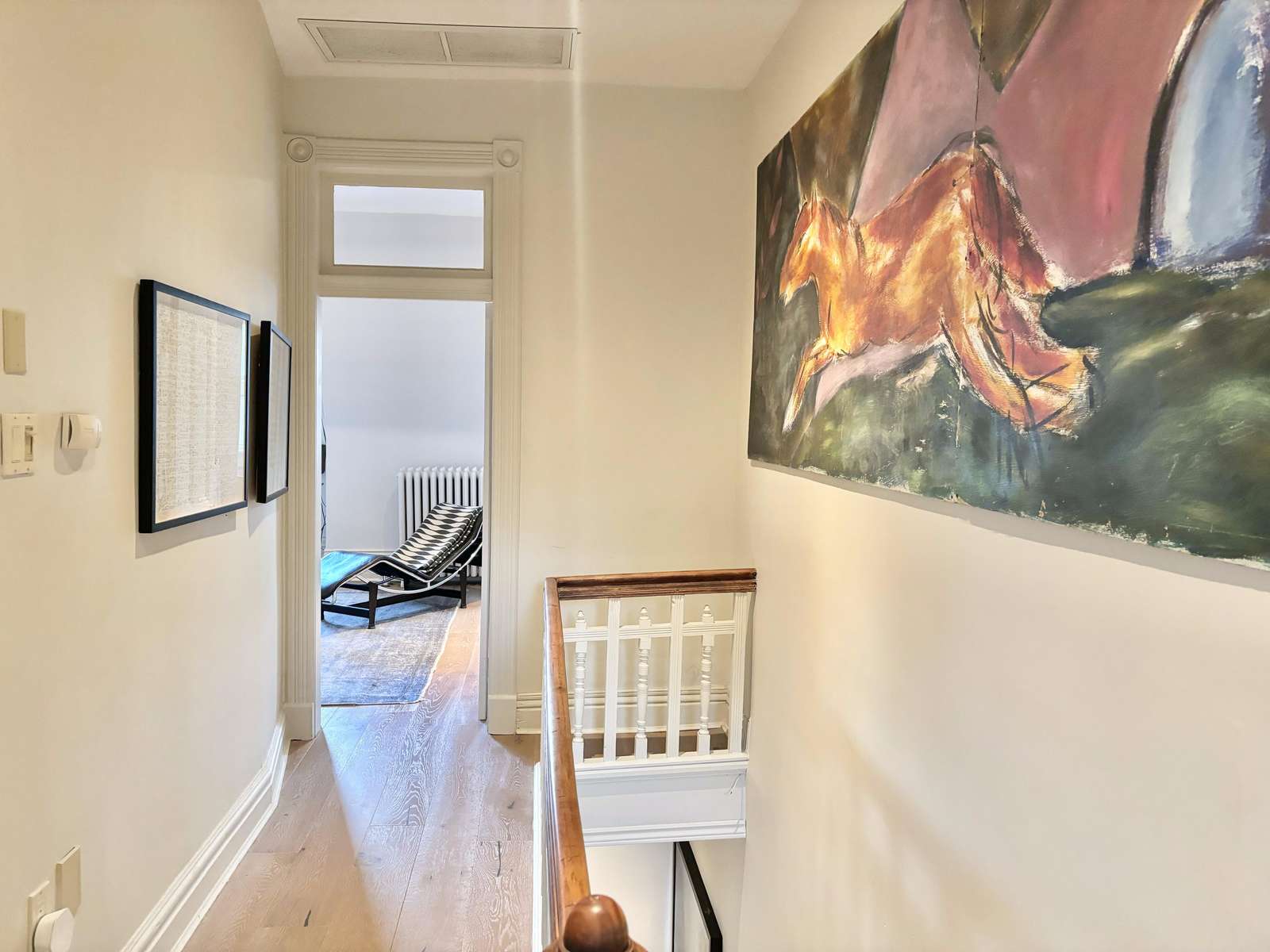 5 bedrooms are generously spread across the second and third floors. These are accessed by the central stair and hallway, that hang with unique artworks.