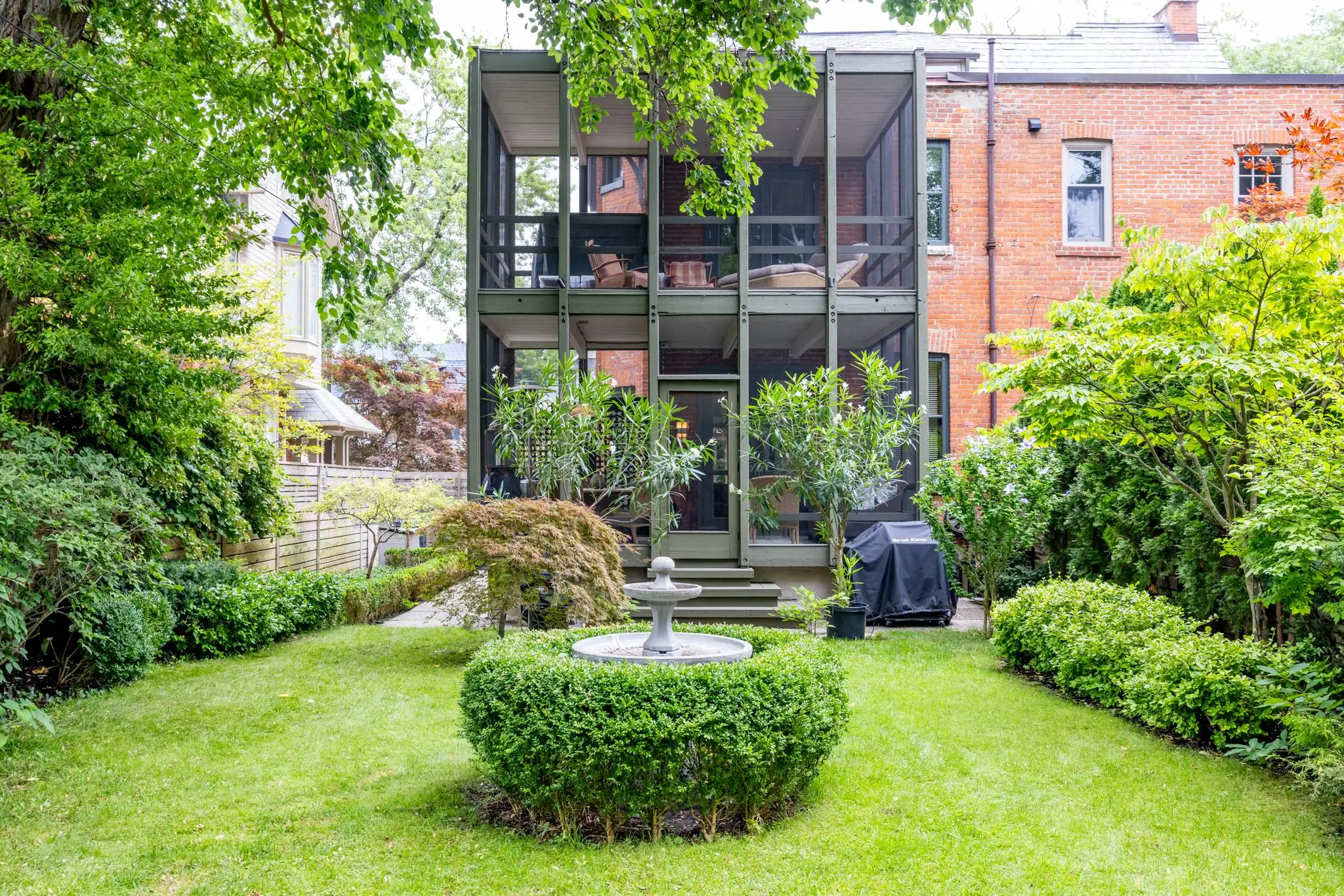 The main home boasts 3 stories, a sanctuary private backyard, screened and furnished patios on two floors, 5 bedrooms, 4 bathrooms and an office overlooking the city skyline. The separate lower level garden suite offers an additional 1 bedroom, 1 bathroom apartment with a private entrance perfect for a stay with extended family or friends. Outside, bask in the private garden featuring a BBQ, charming fountain, large trees, crawling ivy and manicured topiaries.