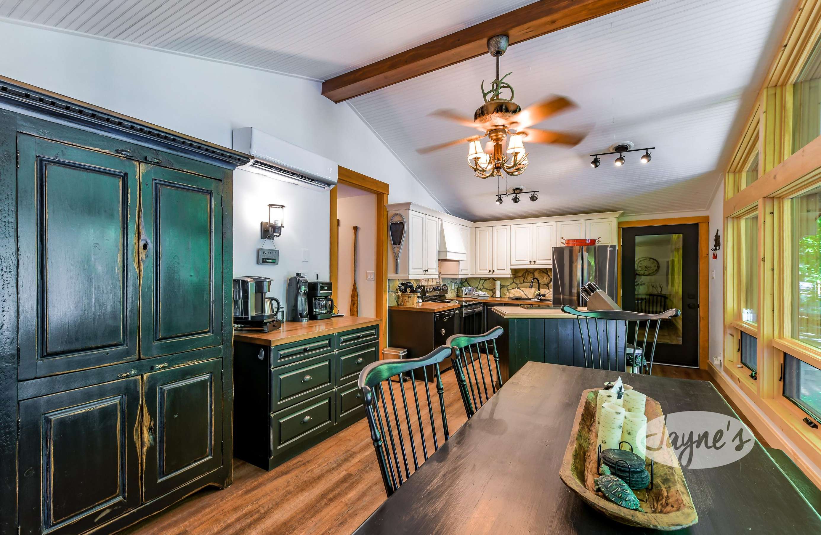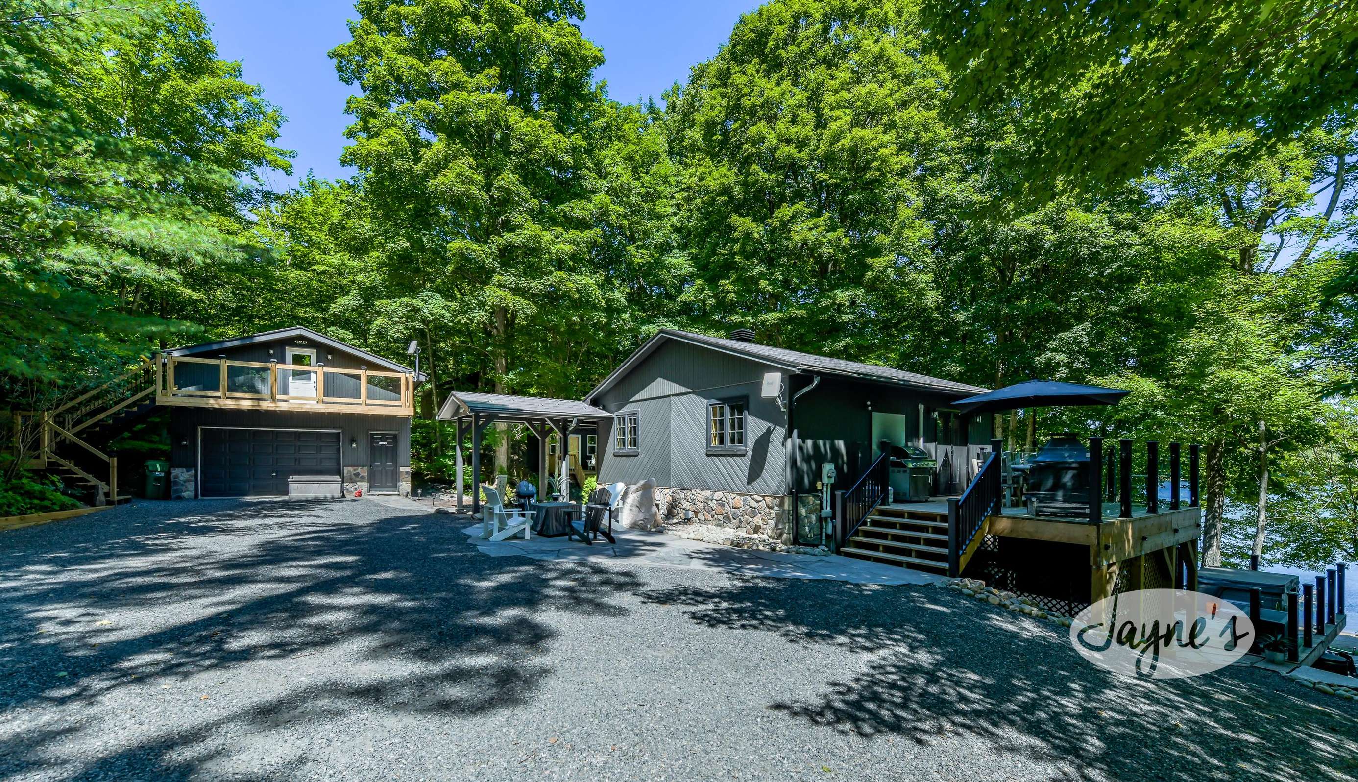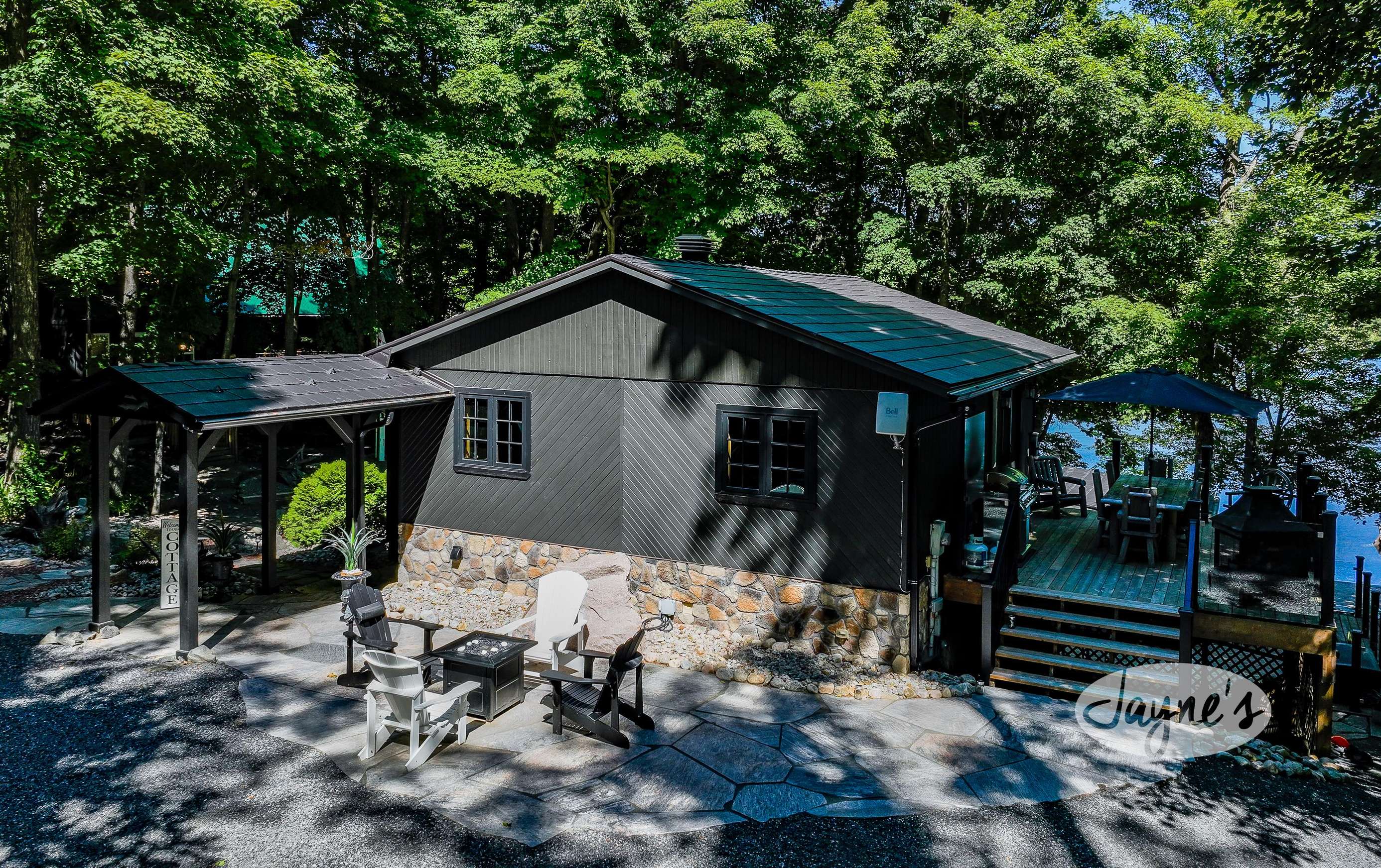 Located just off hwy 400 north of Lake Joe on Salmon Lake, this cottage is truly a place to come, enjoy and relax with the whole family! With sunrises, a beach, hot tub, additional outdoor kitchen, hammock, multiple outdoor seating areas + fire pits!
