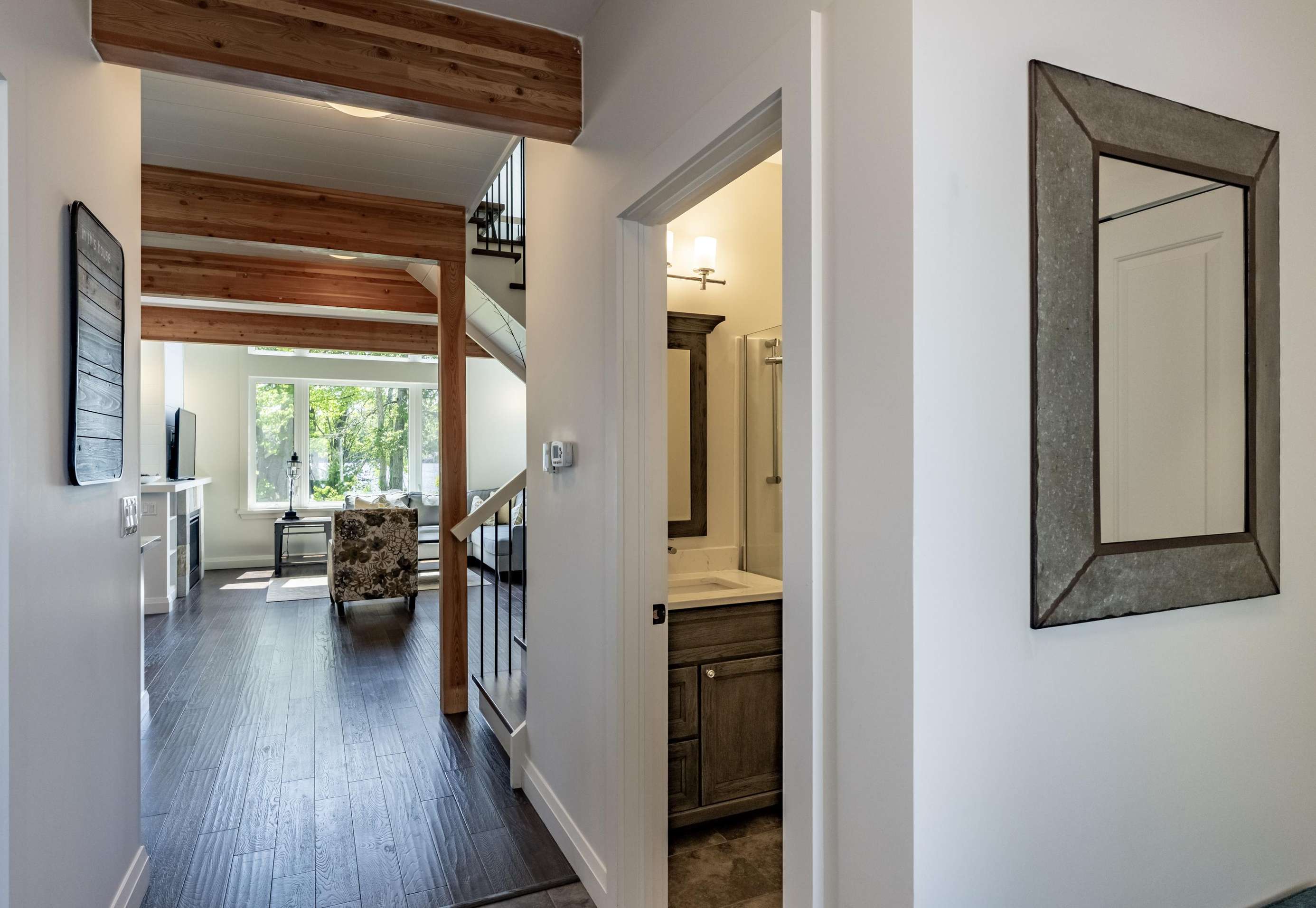 Spacious with sofa, chair, smart TV and gas fireplace