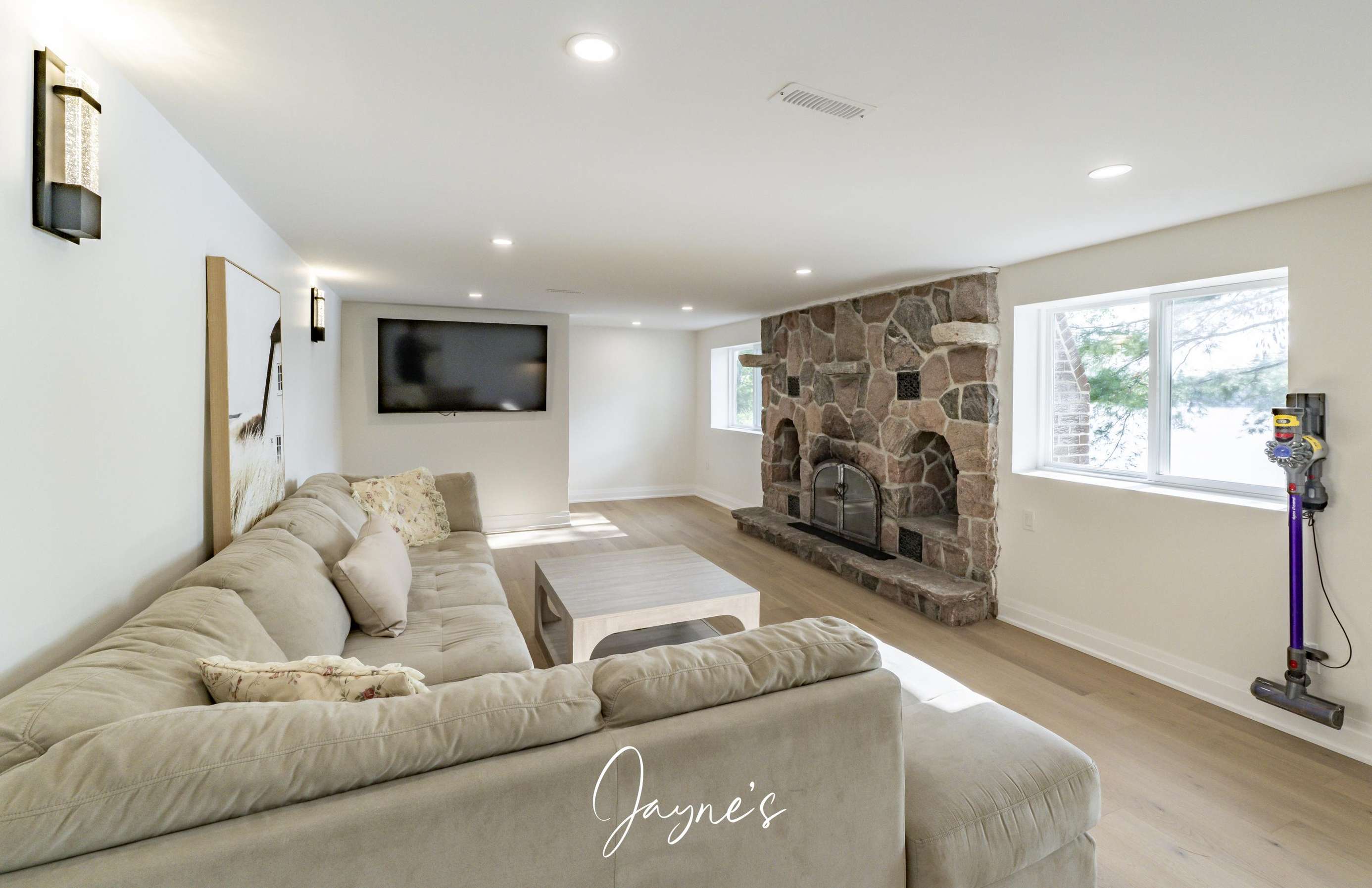 Additional living space with a smart TV and Wwalk out to patio area that leads down to dock