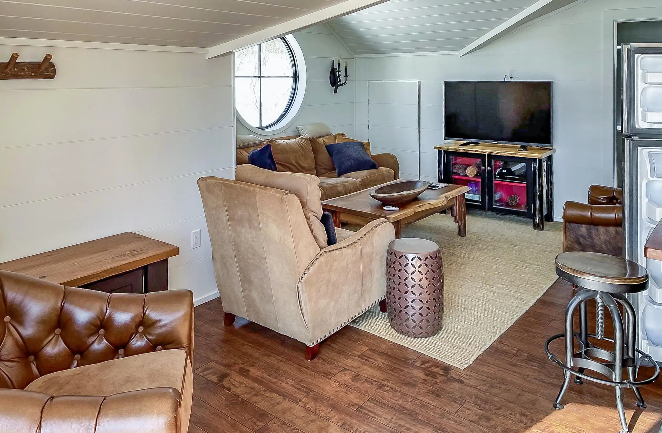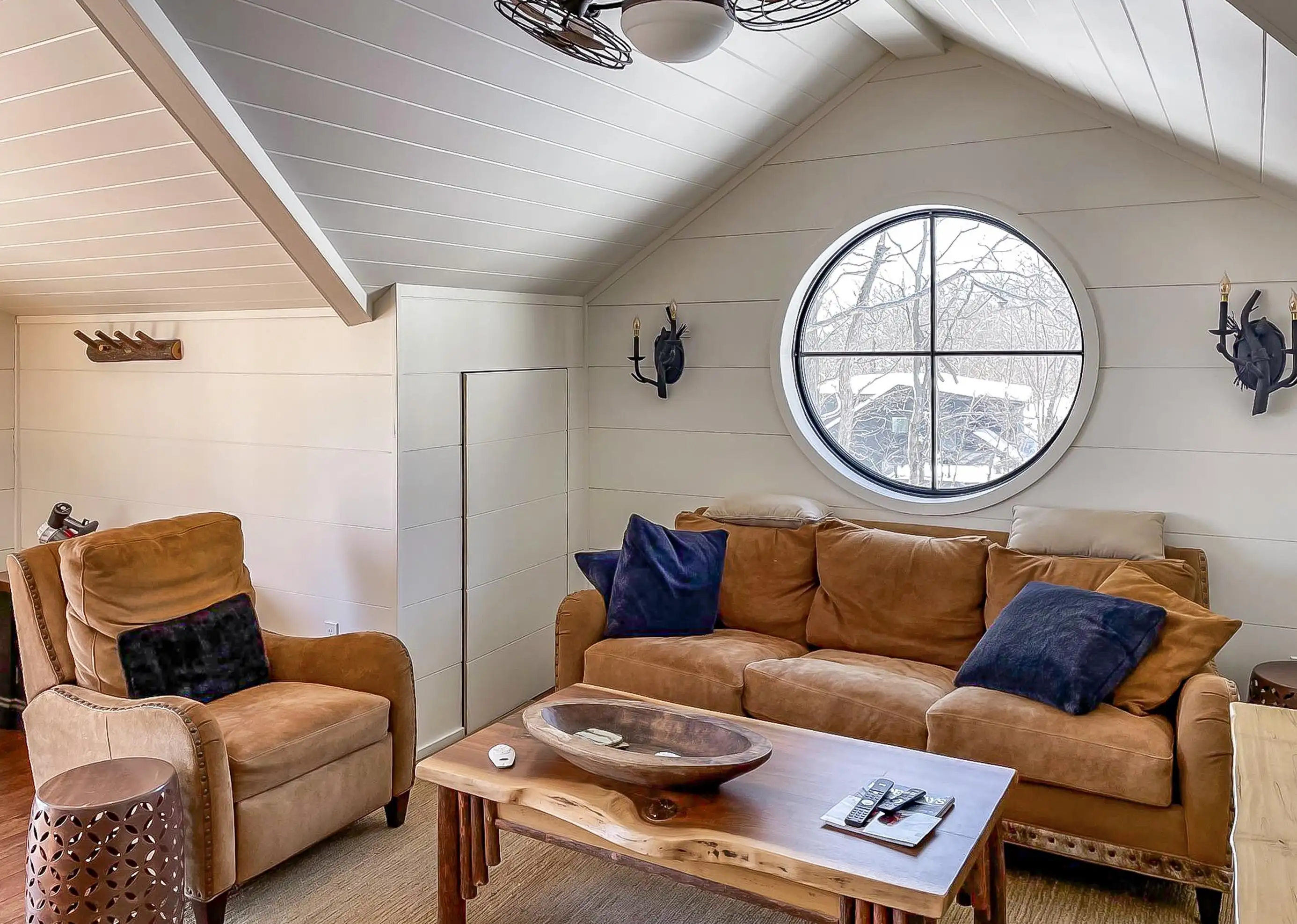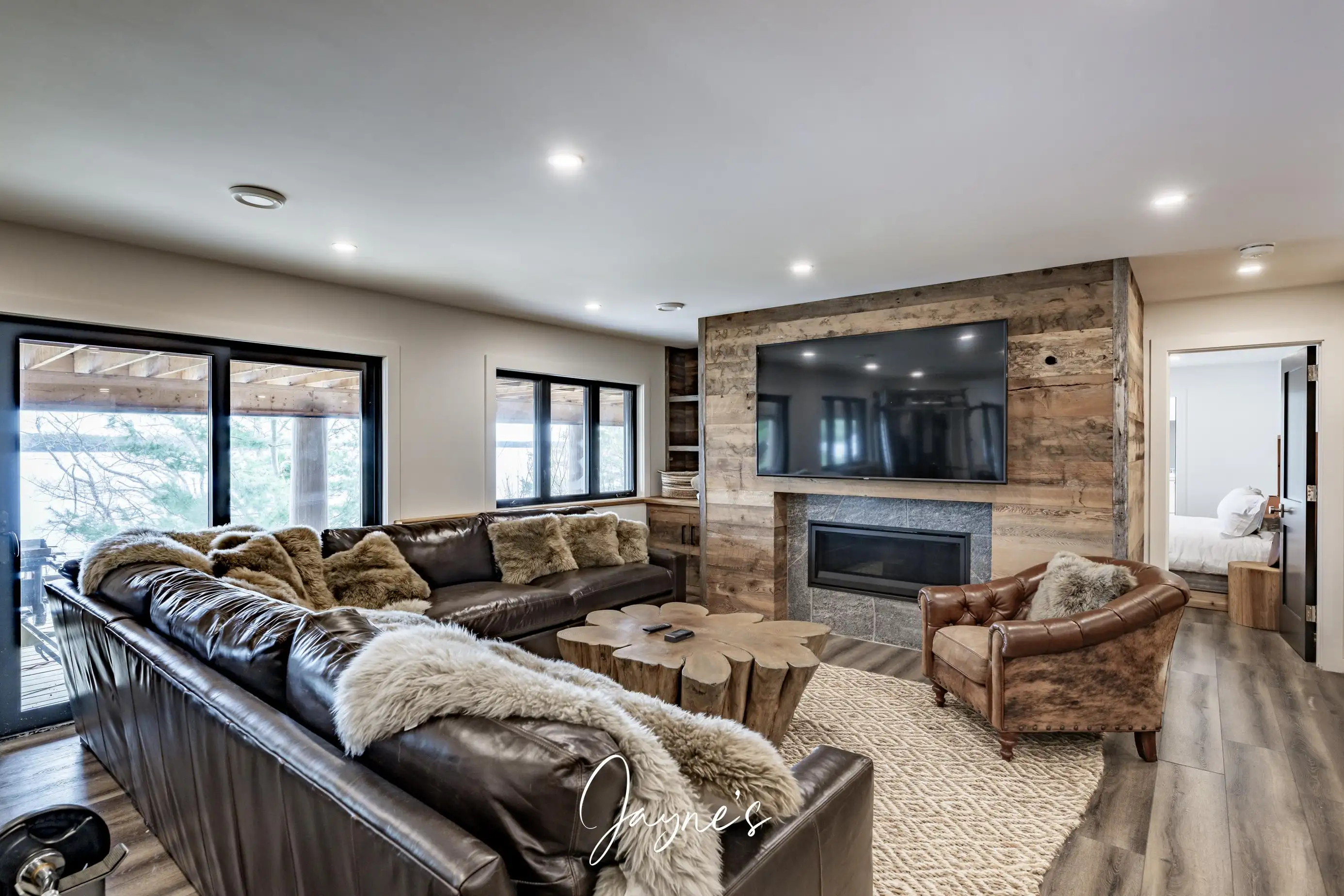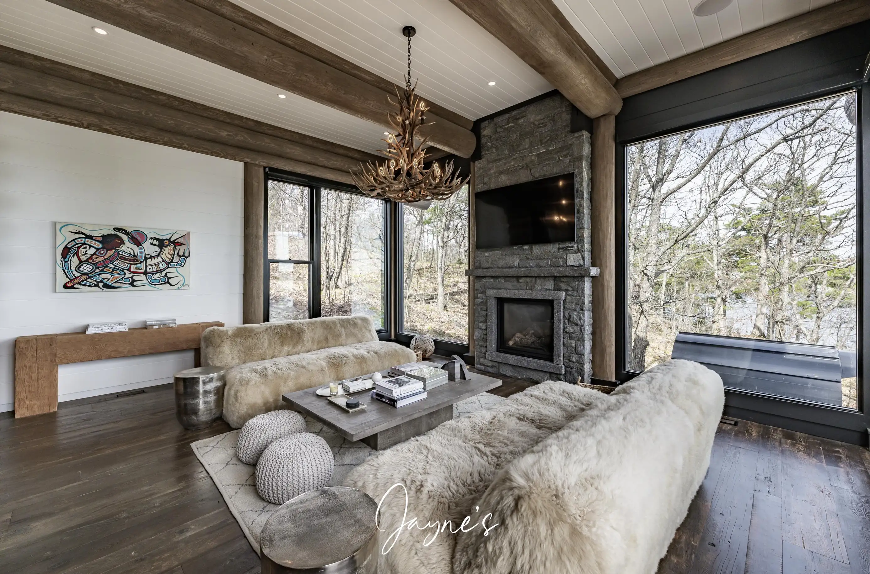- 2 3-seater couches, wood fireplace, vaulted ceilings and large windows.