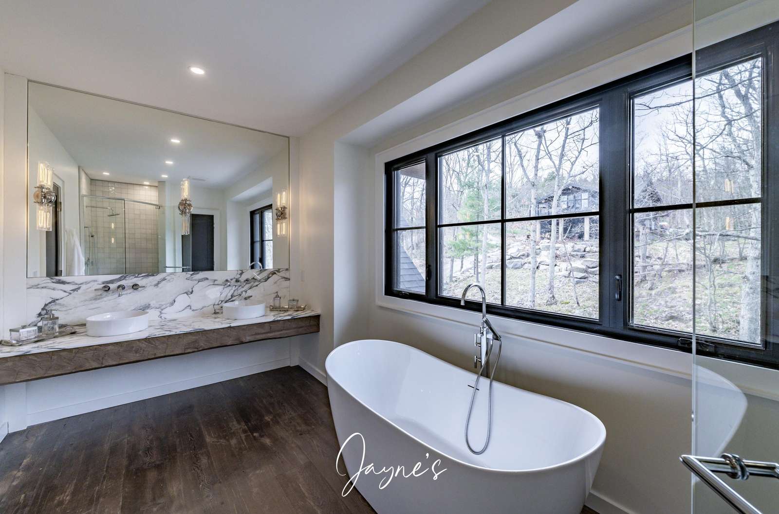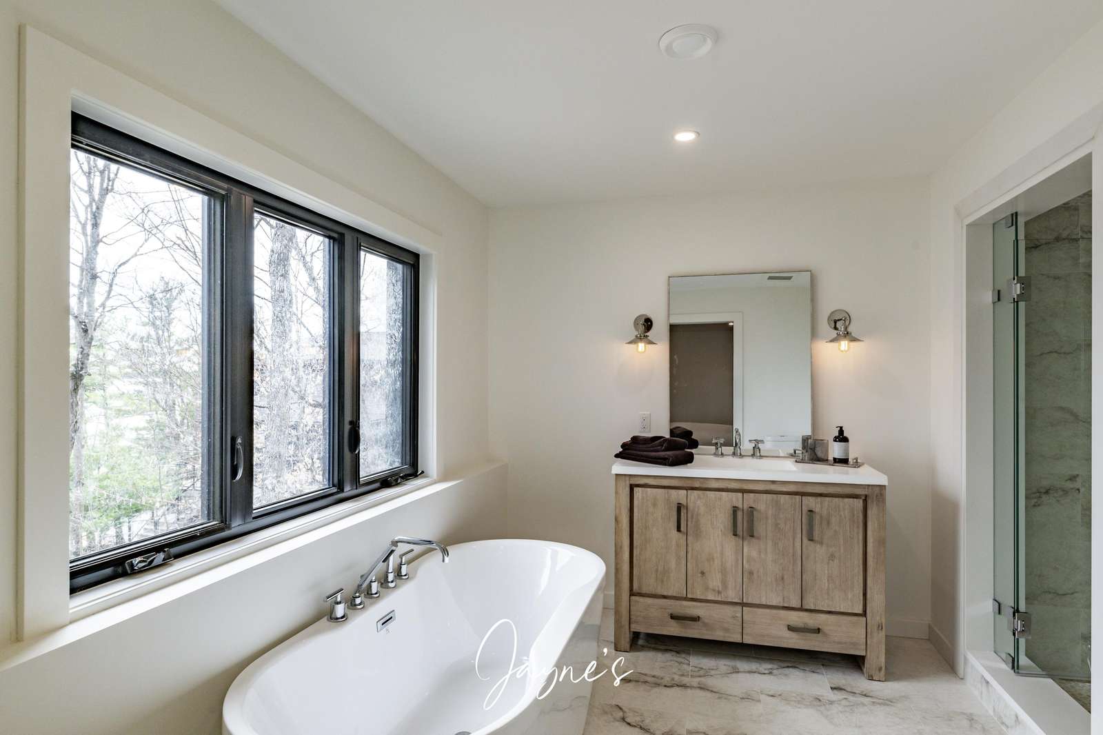 Bathroom 2 - 5-piece primary ensuite with tub, shower, 2 vanities.