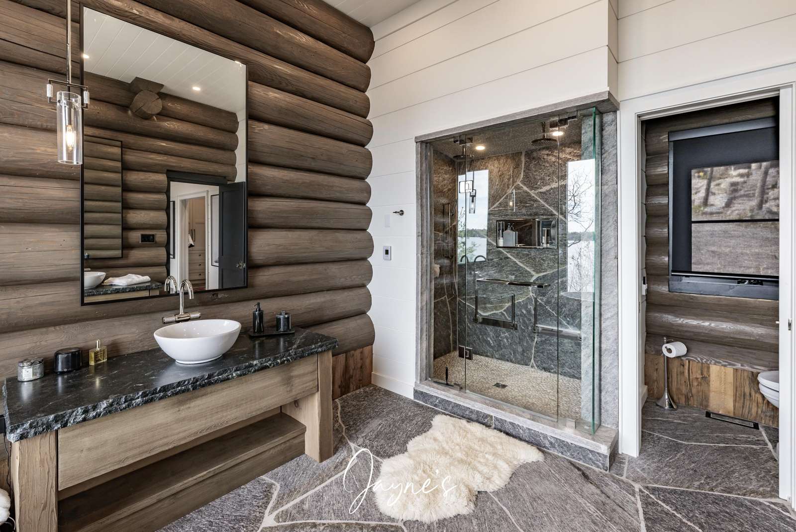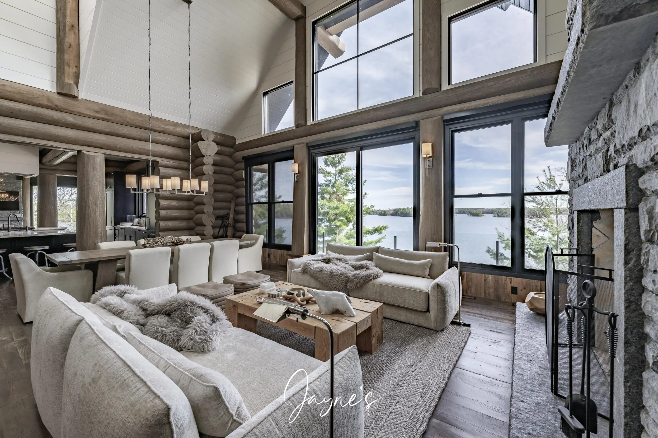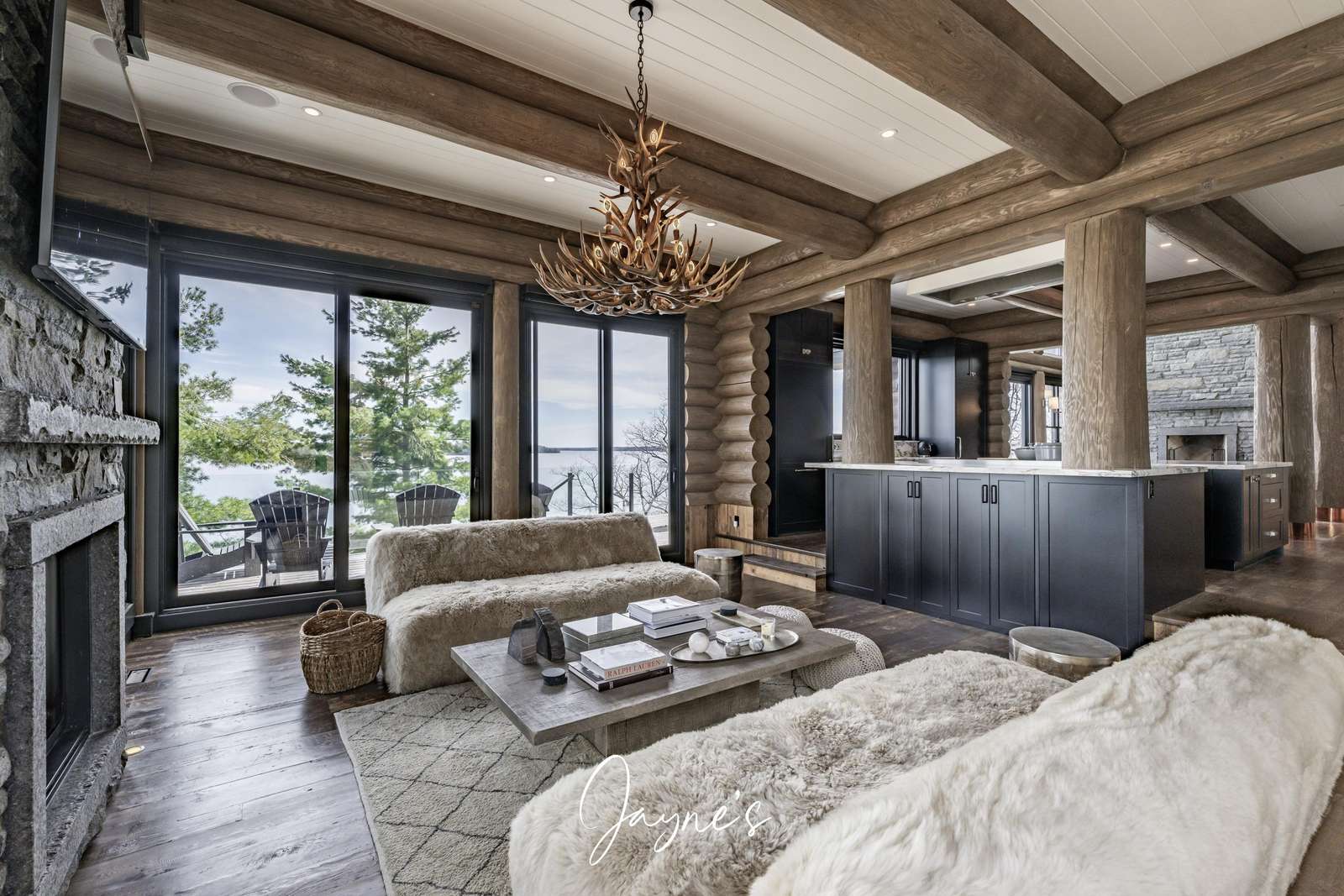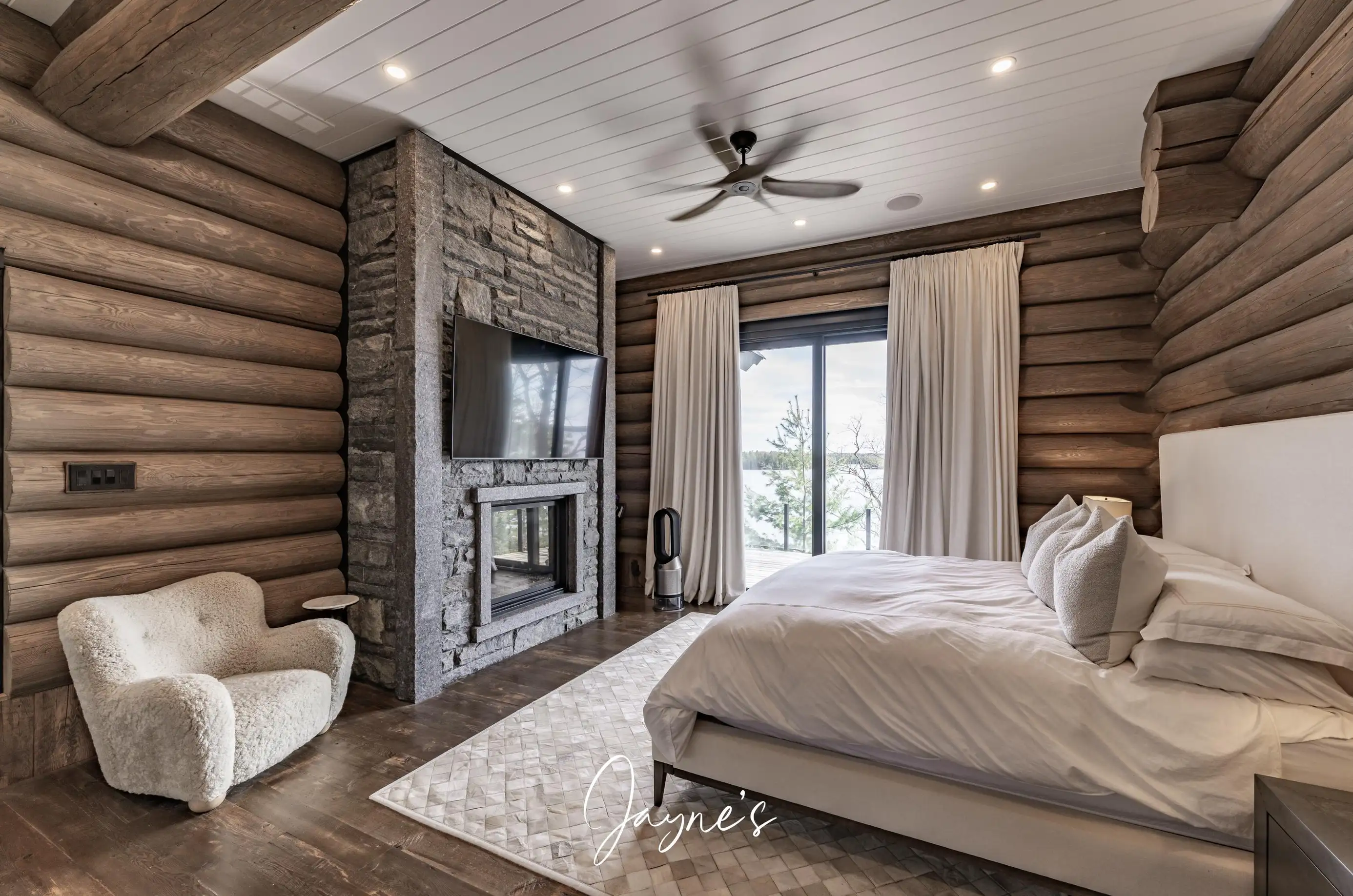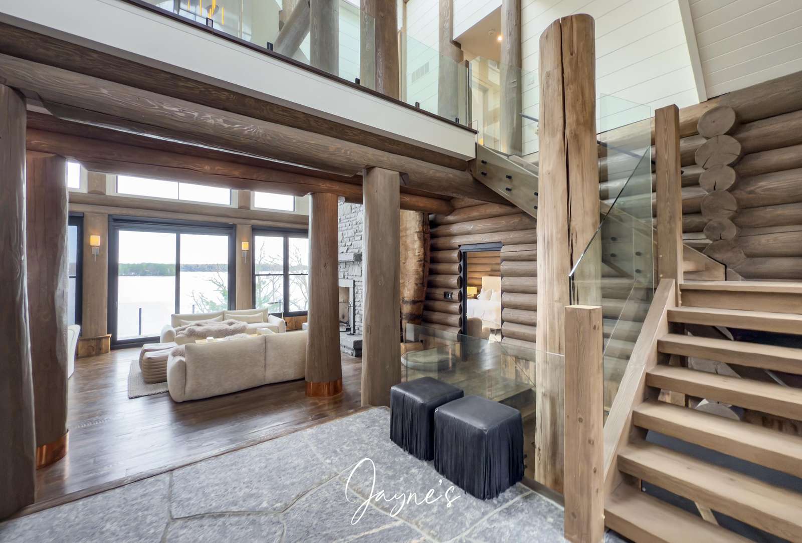 Stunning and luxury log home with 7+2 bedrooms on Lake Muskoka with privacy and all-day sun, just minutes from Port Carling and Bracebridge.