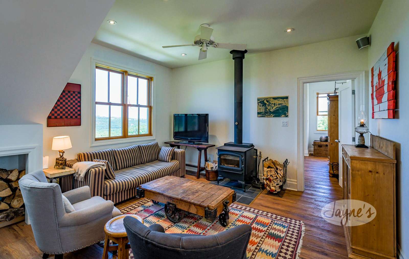 Possibly the most well-loved room in the house, this 3-season sunroom has gorgeous views and is equipped with a pull-out couch. A fantastic place to enjoy your morning coffee.