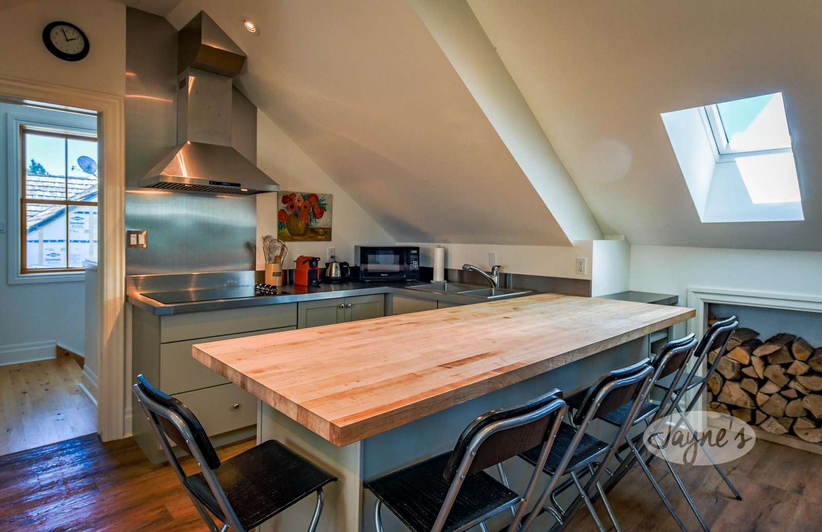There is a separate dining table located just one step down from the kitchen which boasts seating for 6+.