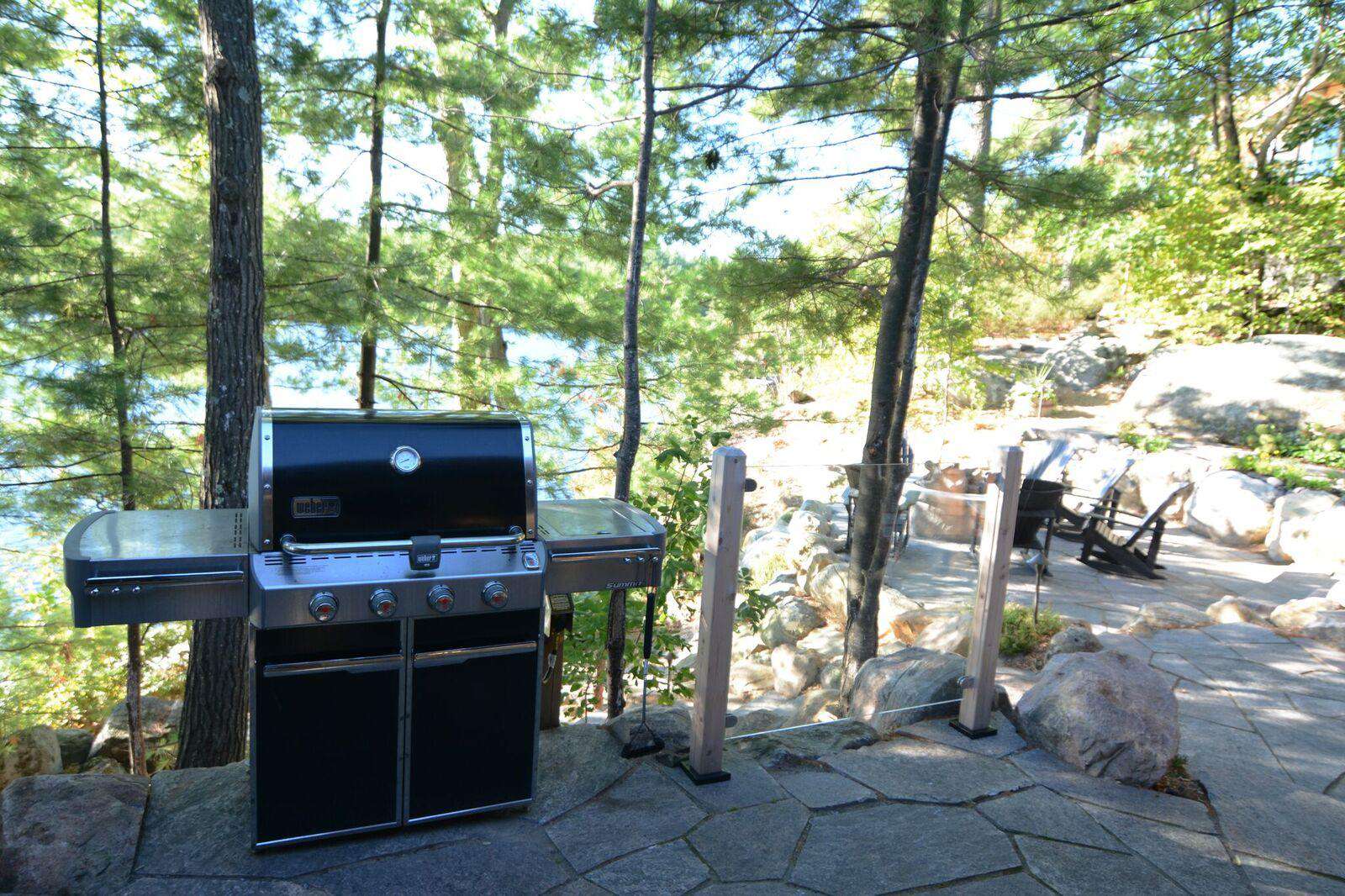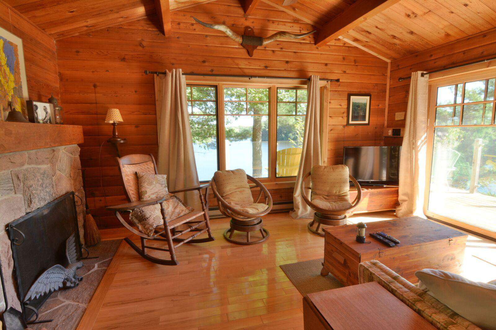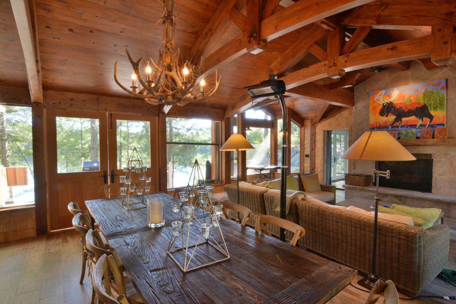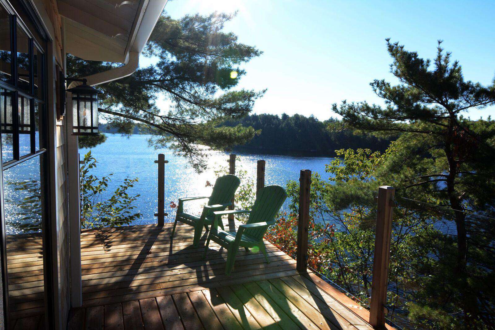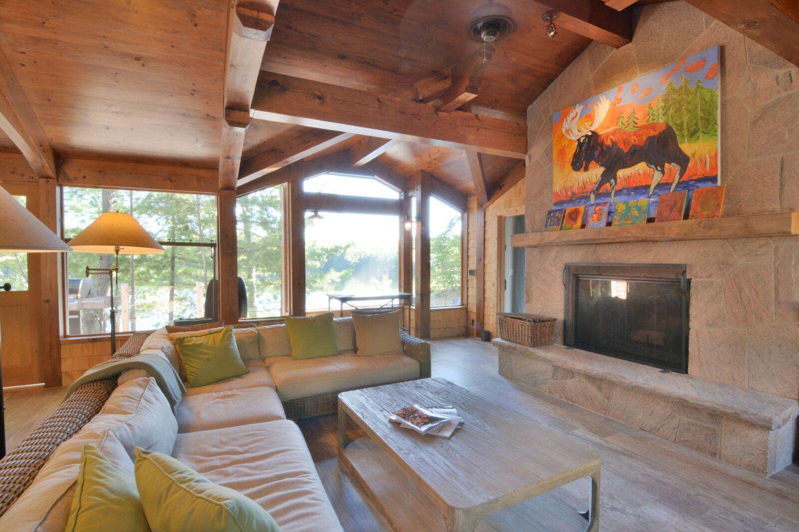 The property contains a newly renovated and expanded cottage and a self contained 3-room bunkie. Materials in all rooms are of the highest quality. Its layout is divine, as all bedrooms except the kids bunk room have views of the water. The main cottage Great Room opens up to a huge Muskoka Room with large wood burning fireplaces and dining areas in both rooms. The other second screened in porch contains a swing bed for daytime peace and quiet or nighttime sleeping in the semi-outdoors! The cottage has great water pressure, fully UV filtered water system and a whole-house standby propane generator.