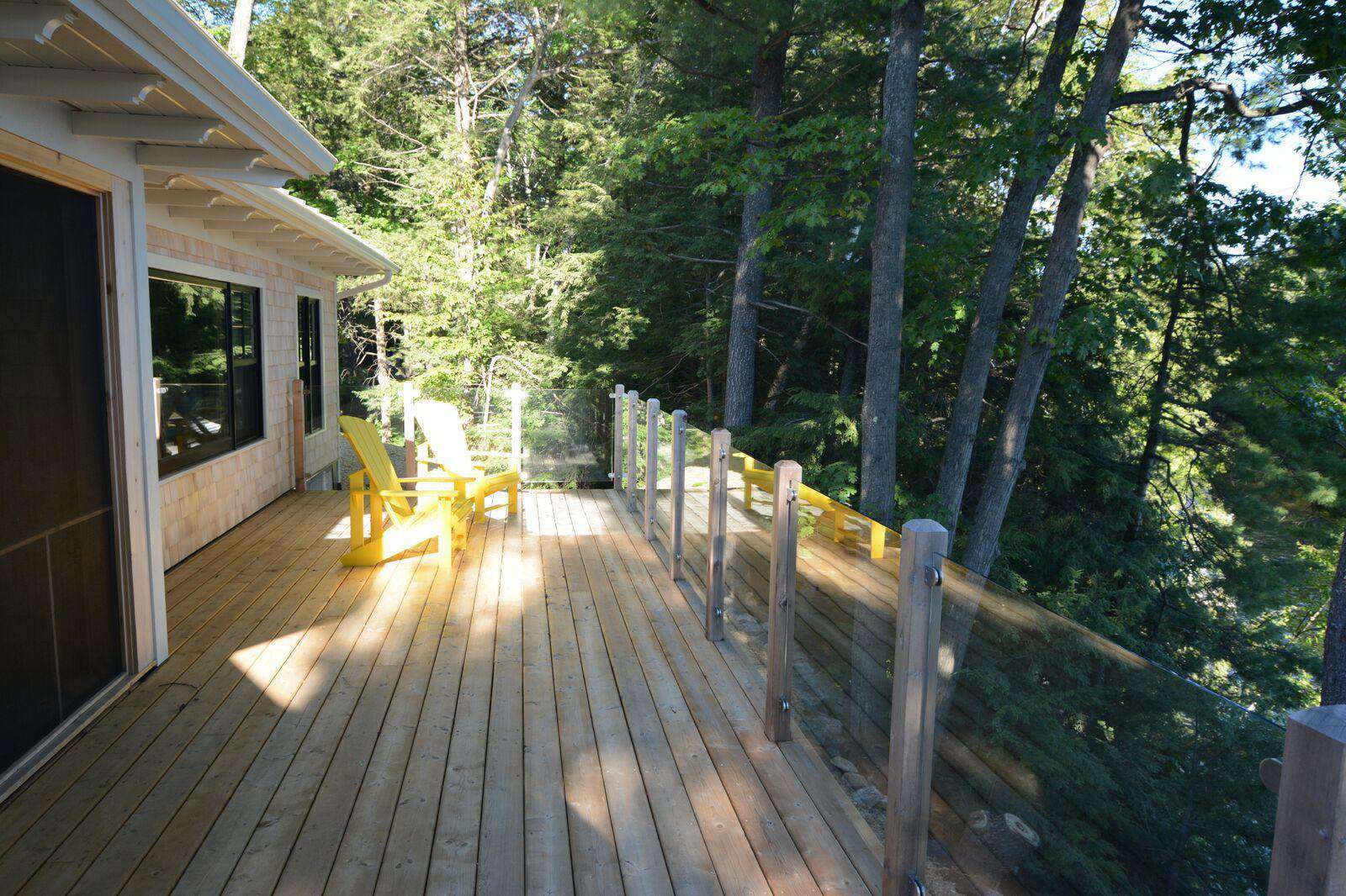 Wrap around decking with glass railings