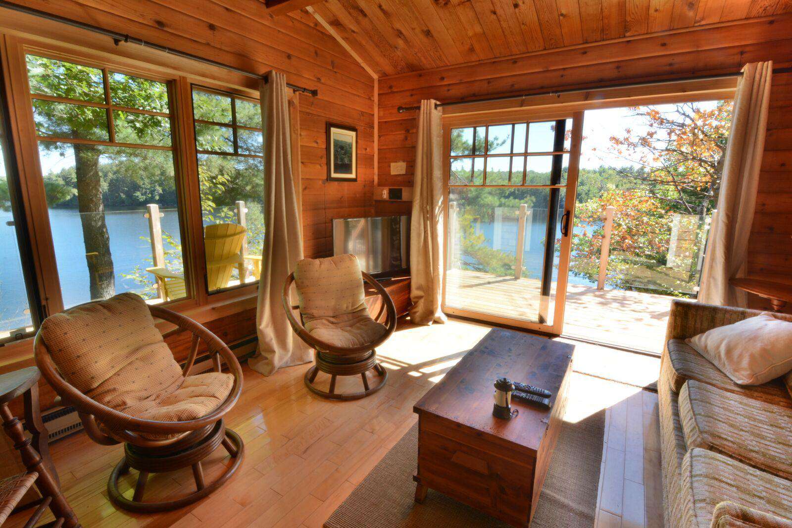 Spoil your guests with the King size bedroom in the bunkie. The bunkie also has a comfortable living room with a wood burning fireplace, kitchen with full-sized fridge, oven and microwave and brand new bathroom with shower. Enjoy the view with its private deck off the Bunkie overlooking the waterfront. It is great for grandparents while the new generations reside in the Main Cottage.