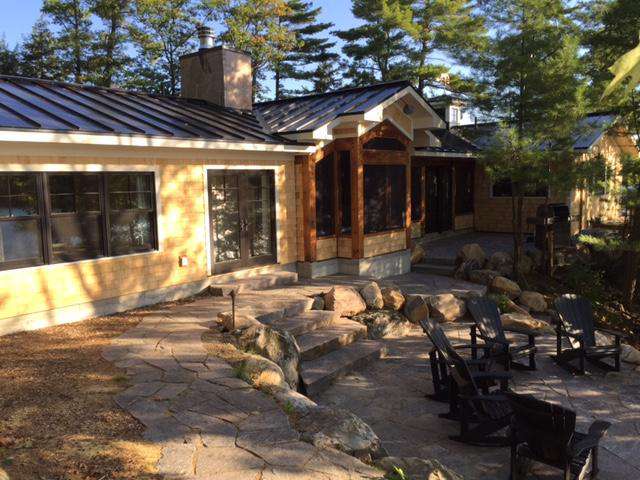 New architectural design in Muskoka! Check this out - Cottage is anchored by 2 Private Master Suites (Pods) each walkout to screened-in Muskoka Rooms then entry into the main building. Suites feature King beds, both with TV, ensuites. AC!