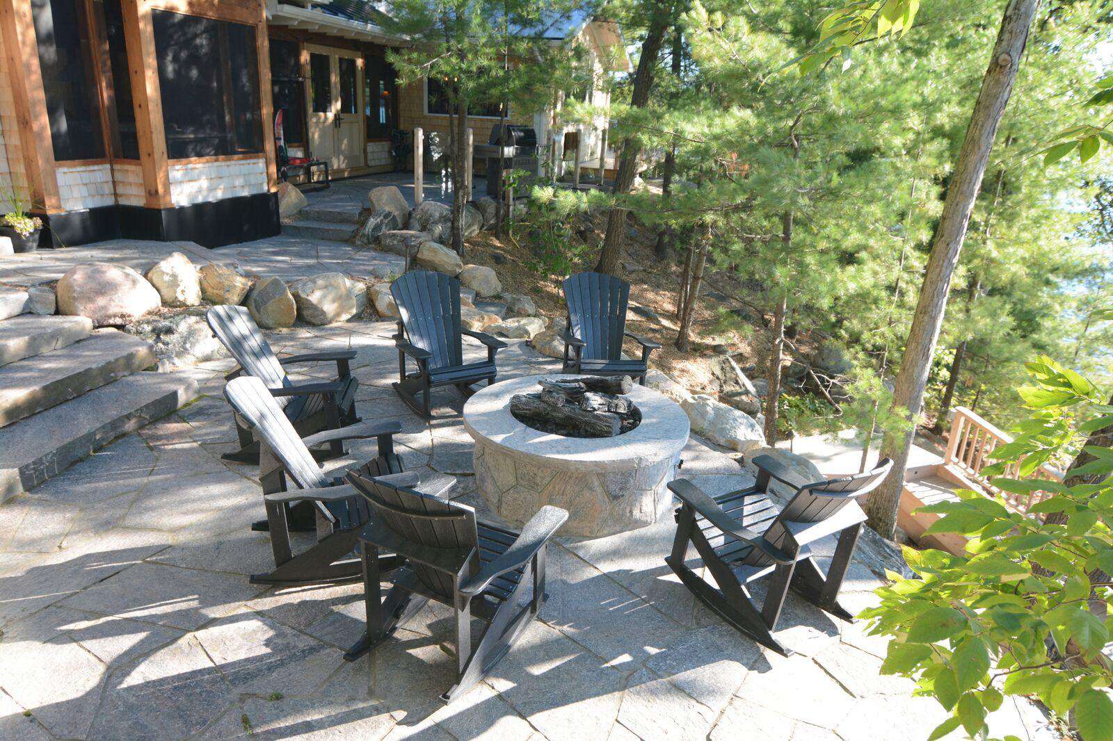Propane Stone Fire Pit with Muskoka Chairs